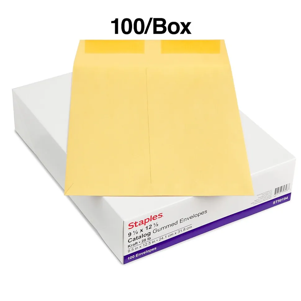 Messenger or mail your letter-sized or smaller documents without having to fold them with these Staple catalog envelopes. The 28-pound paper weight makes them extra strong, keeping them from tearing or bending while also protecting your documents from damage while in transit. These Staples catalog envelopes feature a heavily gummed flap, helping ensure document security while they pass from office to office.
