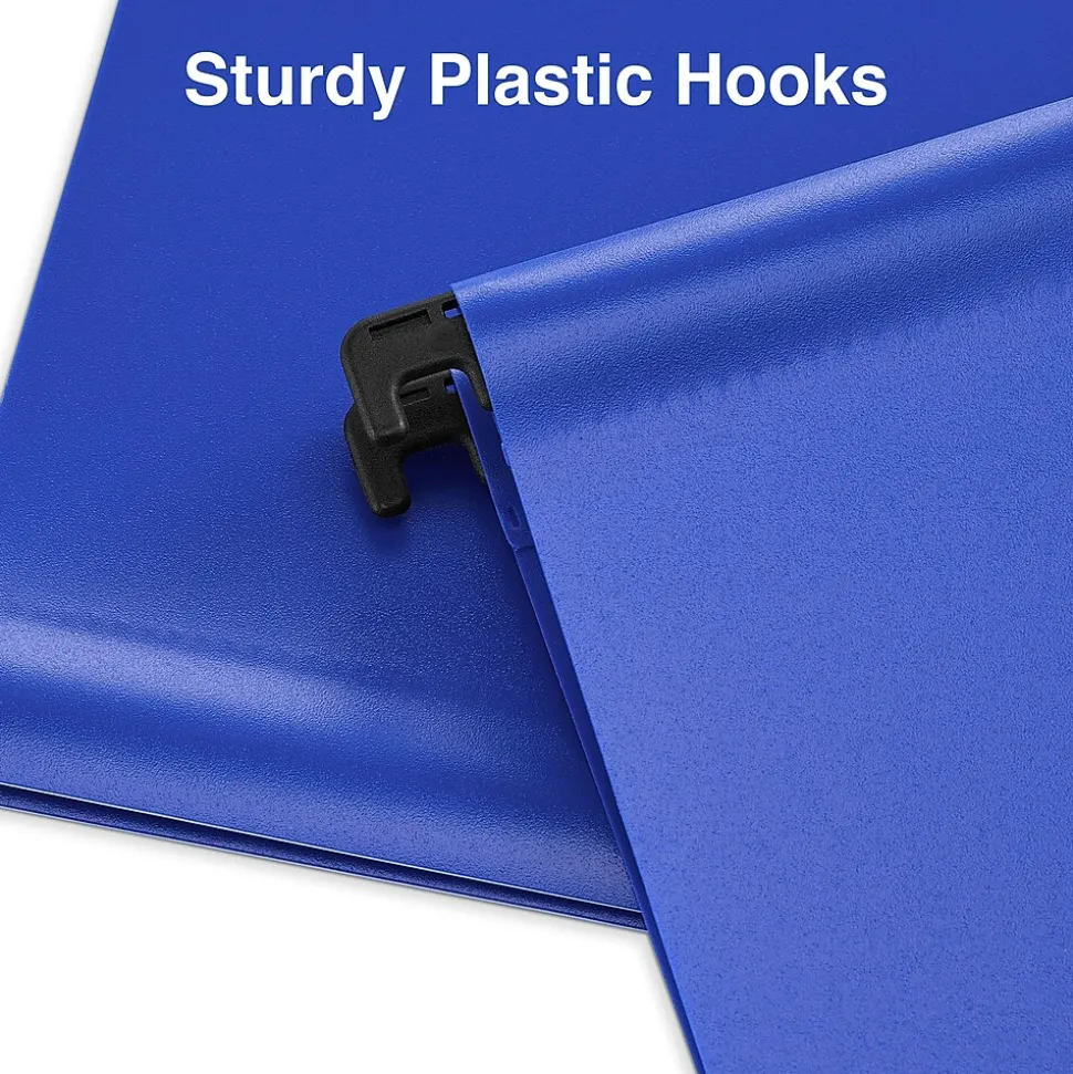 Declutter your desk with these assorted color hanging file folders. Multiple colors help you color-code your projects, while the five-tab position setup supports customization with labels. Important documents are protected from damage by the water-resistant design. Featuring durable plastic construction and coated hooks, these Staples letter-size assorted color hanging file folders withstand frequent handling and slide easily on rails for easy access.