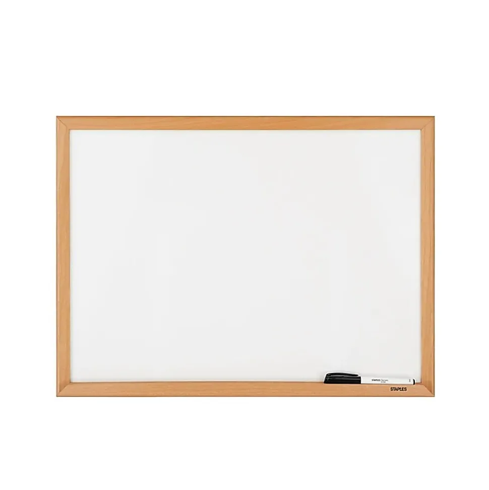Sketch designs and visualize concepts with this dry-erase whiteboard. The smooth white surface makes words and pictures stand out, and the melamine material is easy to wipe clean. A built-in marker tray lets you keep multiple writing instruments close at hand. This Staples melamine dry-erase whiteboard is easy to mount on most walls and includes a marker so you can start brainstorming right away.