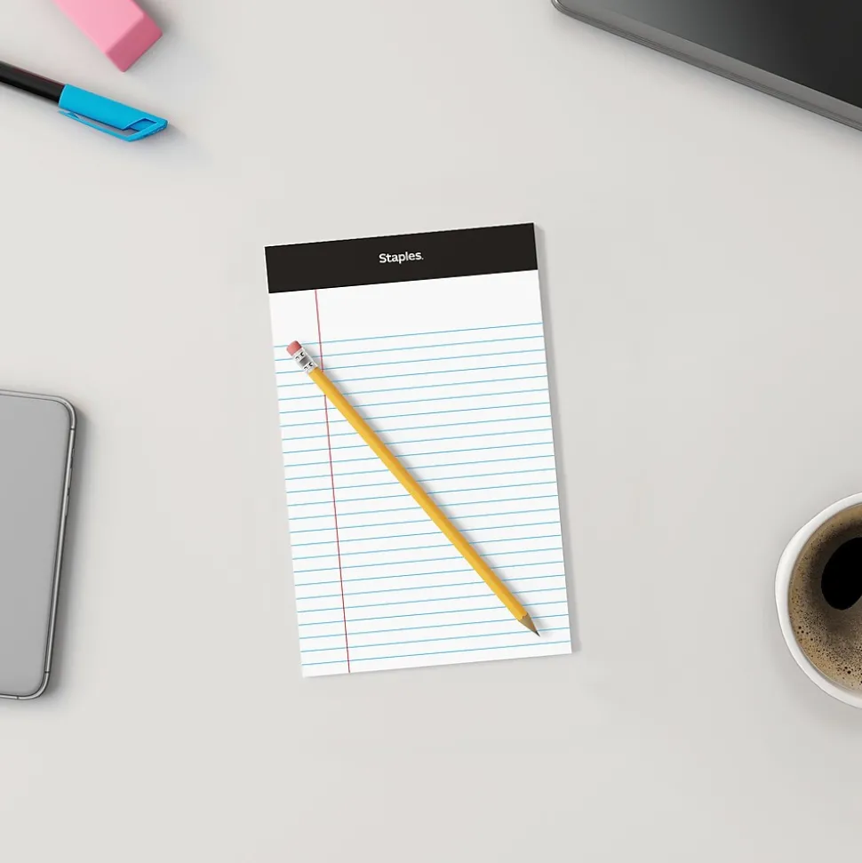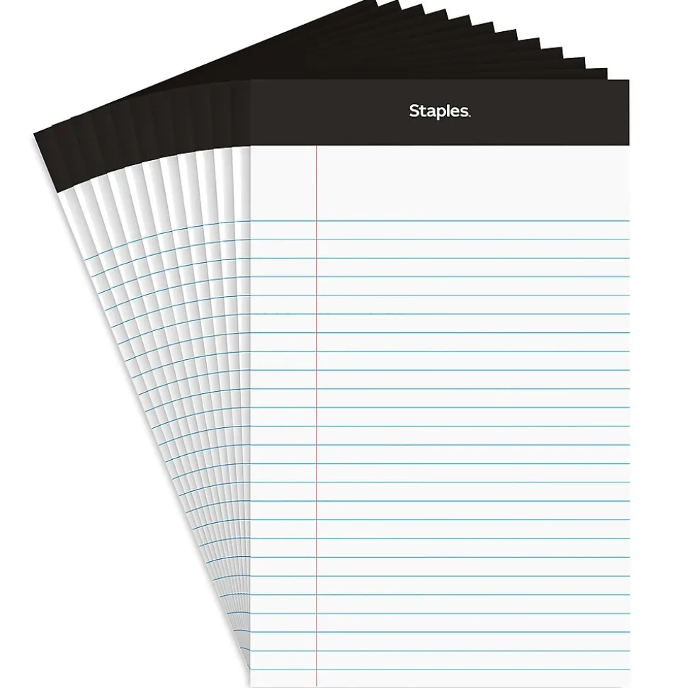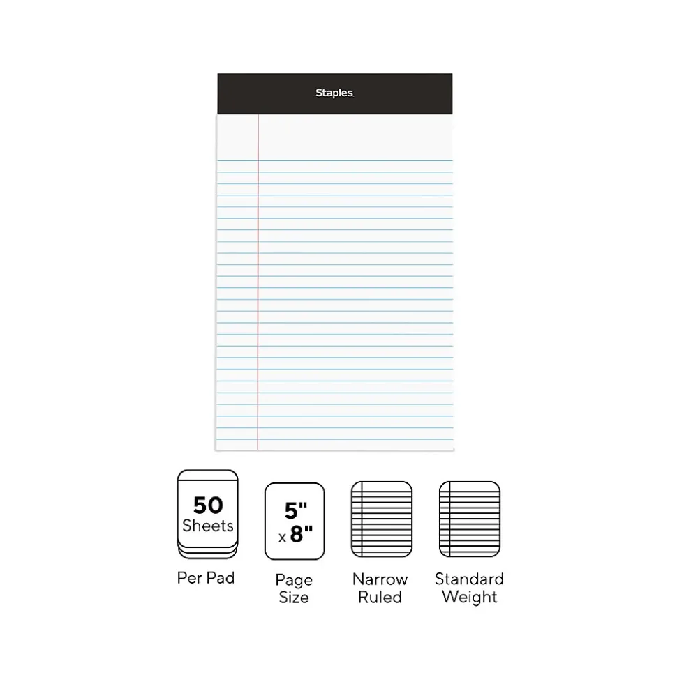 Staples Notepads, 5″ x 8″, Narrow Ruled, White, 50 Sheets/Pad, Dozen (ST57338)