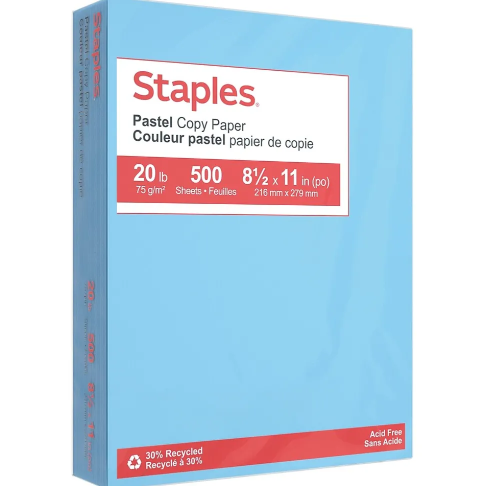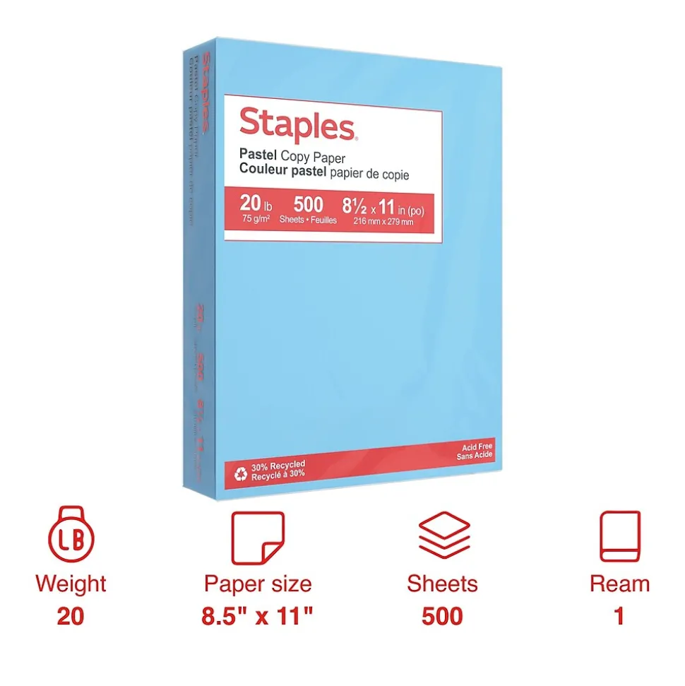 Staples Pastel 30% Recycled Color Copy Paper, 20 lbs., 8.5″ x 11″, Blue, 500/Ream (14786)