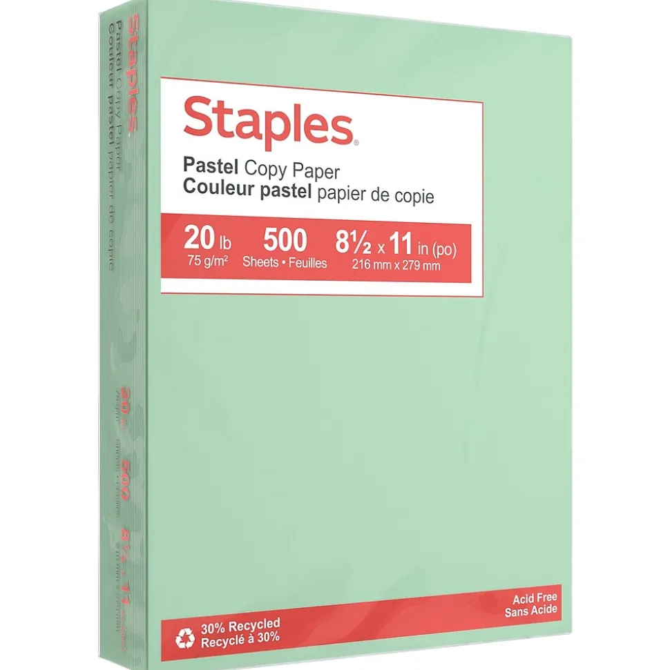 Print memos, notices and other projects on this pastel green copy paper. Each paper in this 500-sheet ream is acid-free and archival quality so your projects stand the test of time. This green paper is perfect for color-coding documents, adding emphasis to projects and creating notices that stand out. This Staples copy paper is compatible with most copiers and laser or inkjet printers.