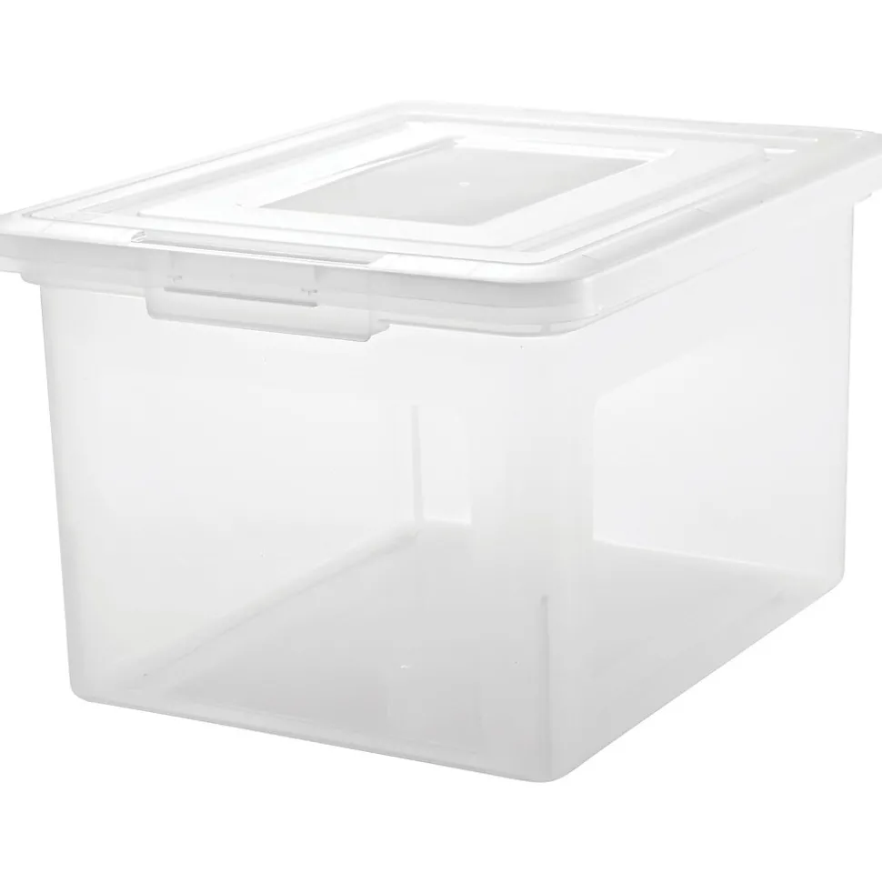 Keep documents, office supplies, and other items safe by storing them in this letter/legal clear file box. The polypropylene construction offers strong durability, while the included snap-tight lid helps keep contents secure and dry. This Staples file box is clear, so you don’t have to manually rummage through it to identify contents, and it’s lightweight, making it easy to take wherever you need it.