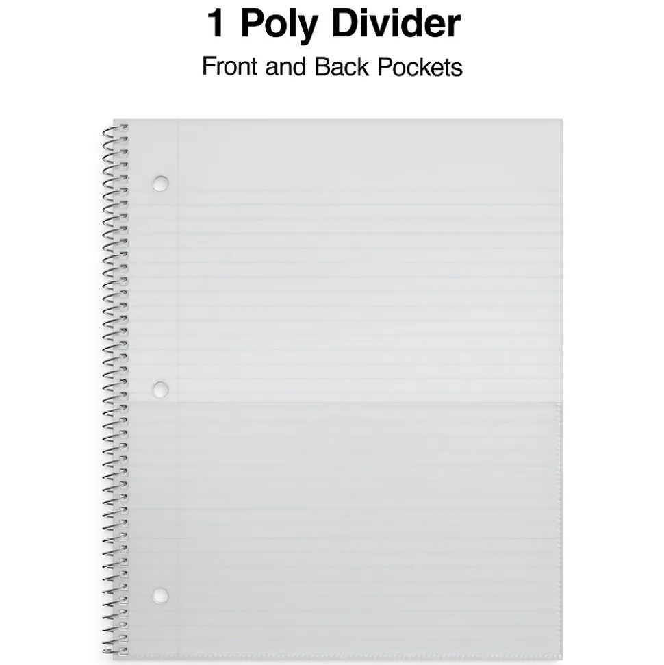 Ensure you have paper for writing on the go with this 1-subject notebook. A purple poly construction protects pages from moisture and damage, while the wide-ruled pages make it easy to write legibly. Perforated sheets are simple to remove for sharing. This Staples Premium 8 x 10.5-inch purple poly 1-subject notebook includes a pocket divider for additional organization and storage.