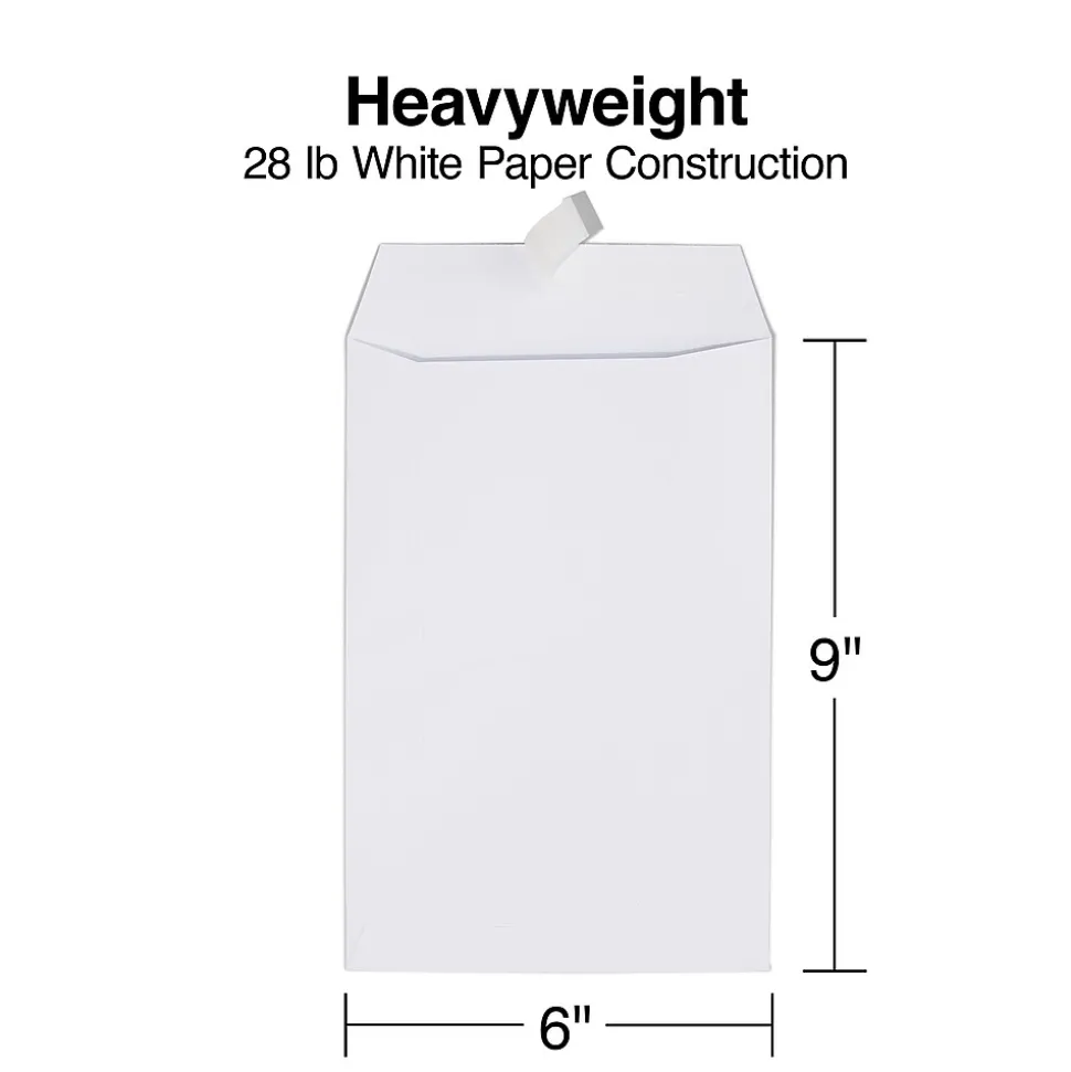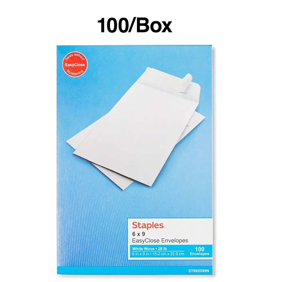 Keep important correspondence safe with these Staples EasyClose white wove catalog envelopes. Each envelope is crafted from 28-pound wove paper and is white, so any text or labels you put on them stand out for easy readability. These Staples EasyClose white wove catalog envelopes are easy to seal shut thanks to the EasyClose design that lets you simply peel and close.