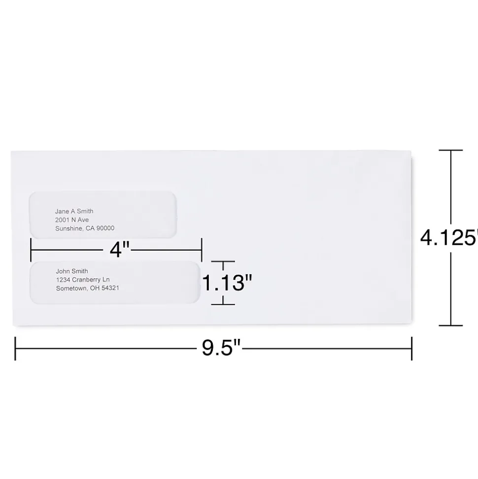 - Double-window envelopes conveniently display addresses