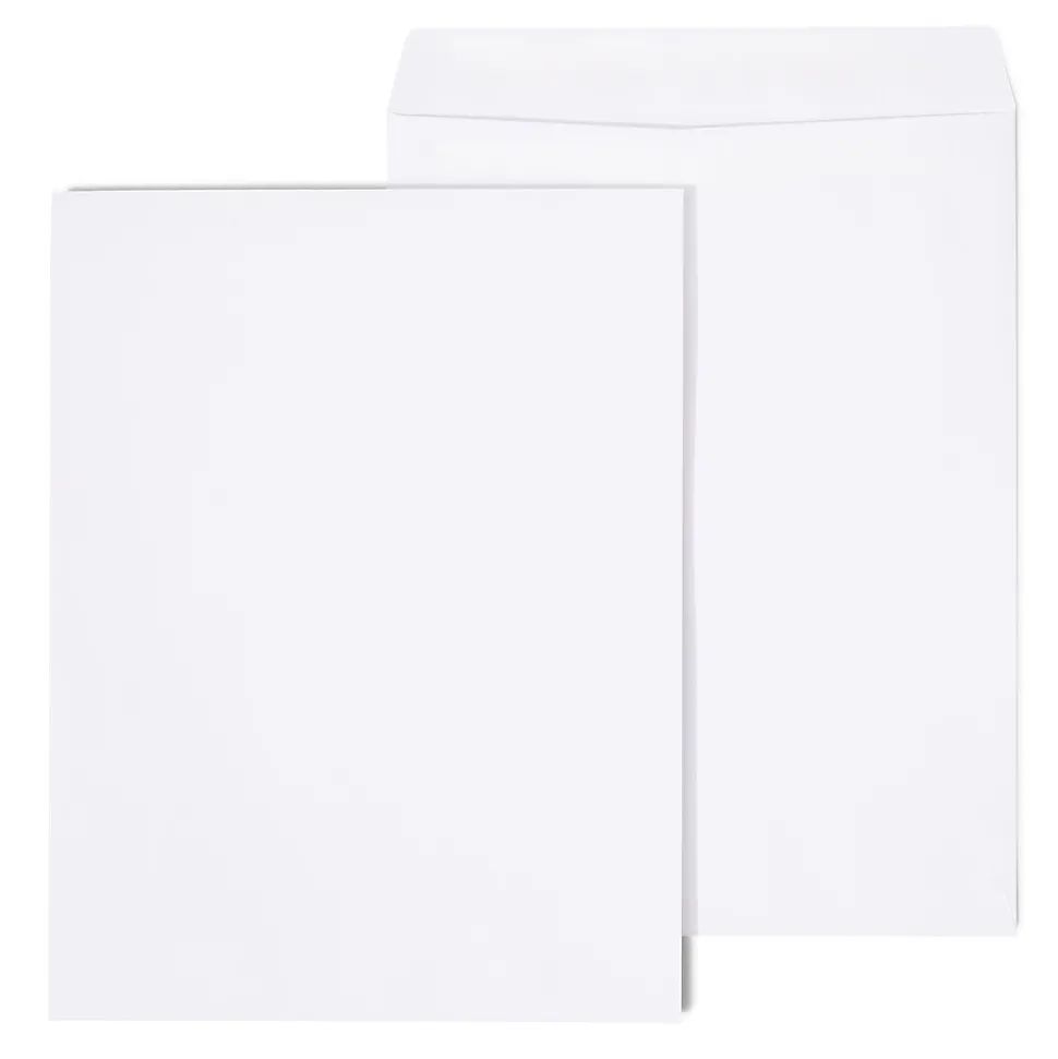 Store important documents in these professional looking white wove self-sealing latex glue adhesive envelopes. The white wove material offers a bright background to contrast against hand-written or printed text, so addresses are easy to read, while the self-sealing design on the flap lets you close each envelope with ease. These Staples white wove catalog envelopes seal shut without extra moisture being added.