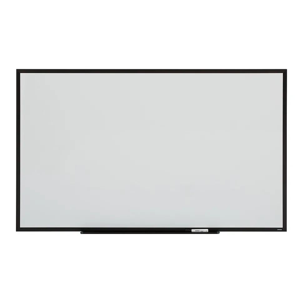 Display important information with this standard steel whiteboard. Use the included mounting hardware to securely hang this whiteboard, and place the included dry-erase marker on the accessory tray to complete the setup. With a smooth and durable surface, it provides high contrast to dry-erase markers and marks are cleanly wiped away without leaving stains. A magnetic surface lets you post papers and other information on this Staples standard steel whiteboard.