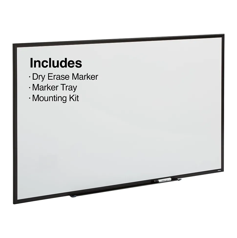 - Package includes: whiteboard, mounting kit, marker tray, dry erase marker