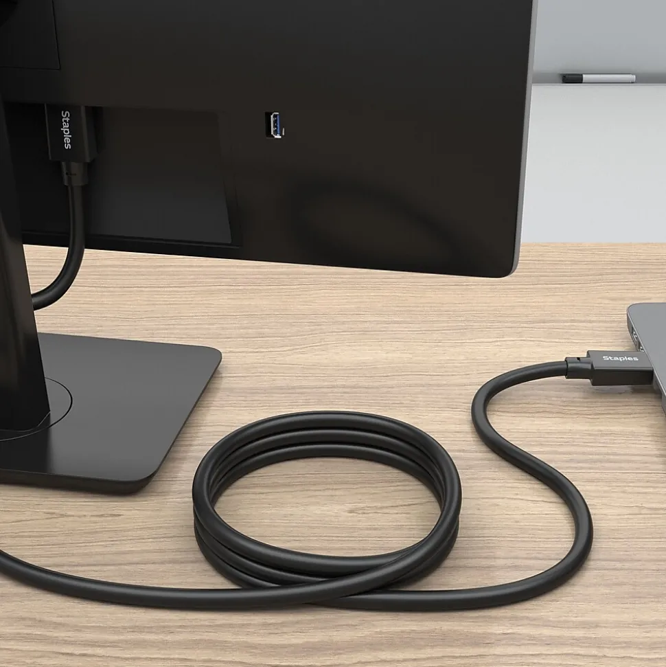 Delivering crisp 4K Ultra HD resolution this cable promises clear audio and video for an exceptional experience. Featuring a 25-foot cord, this cable provides you extra length to connect devices across the room. This cord is the perfect choice for outfitting your work, gaming or media space. Enjoy high resolution audio and video between devices so you can upgrade your home or office workspace and do your best work. Backed by Staples Brands 100% satisfaction guarantee, or your money back.