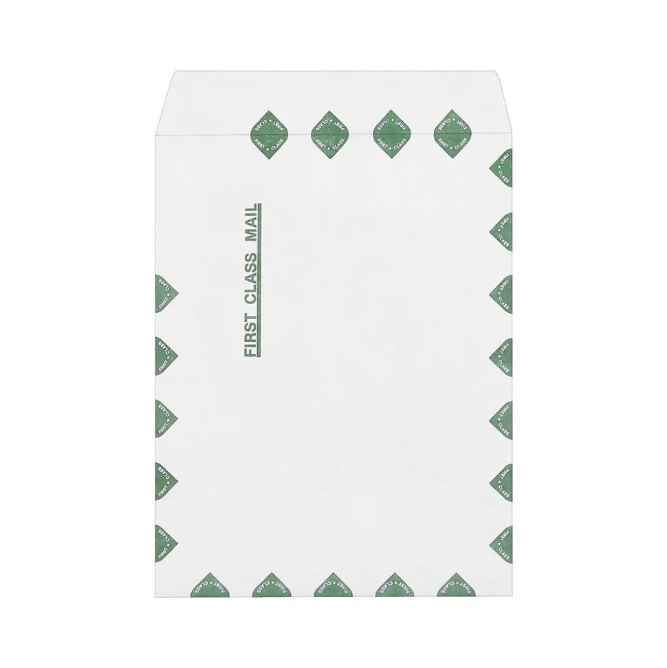Identify first class mail with ease by using these Staples Tyvek EasyClose first-class catalog envelopes. Each of these envelopes has an EasyClose design that lets you seal contents safely away without a sponge or water, while the reinforced construction offers strong durability. These Staples EasyClose first-class catalog envelopes come with 100 units in every box.