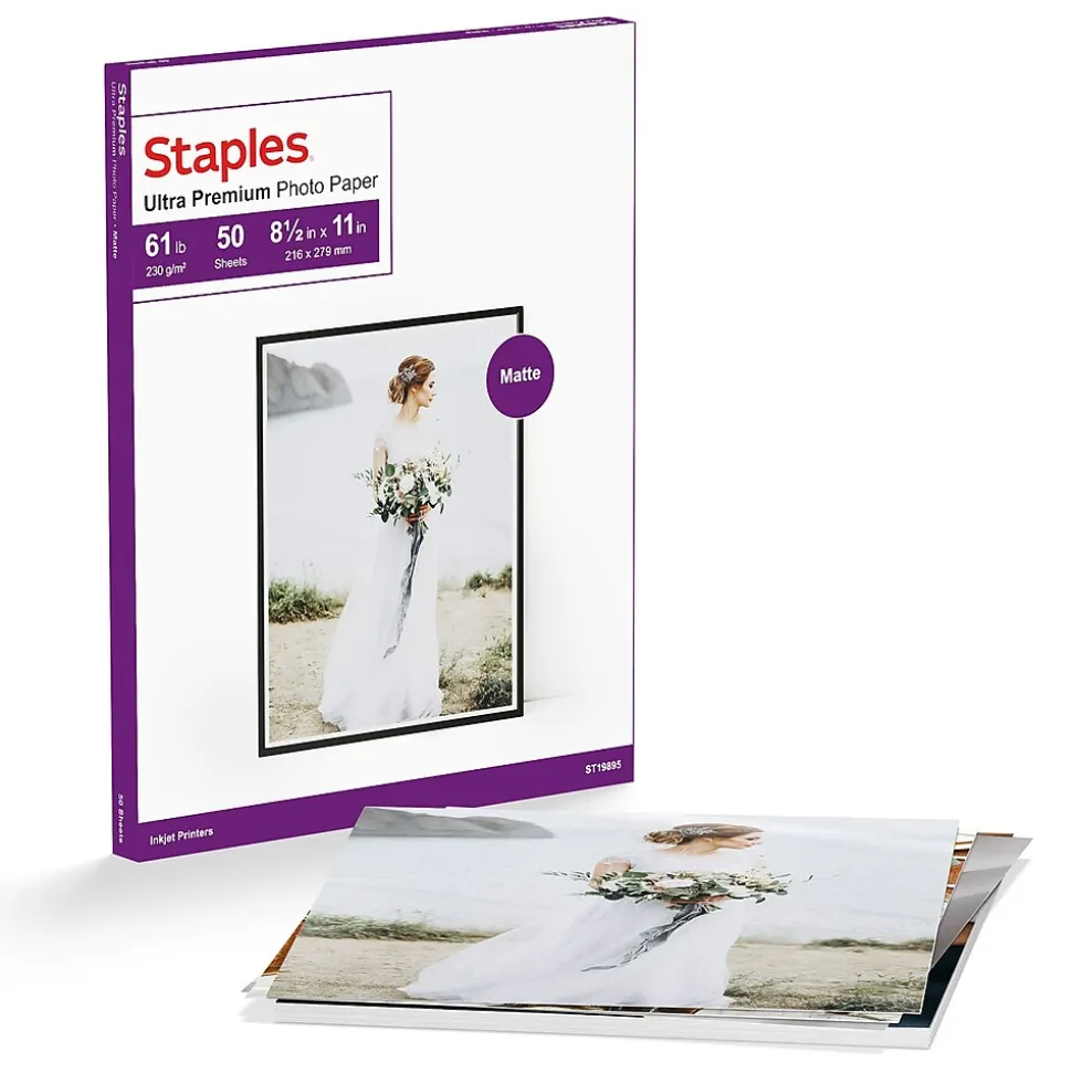 Get high-quality photos straight from the printer with this ultra premium photo paper. The double-sided matte finish ensures images print with rich, bright smudge-free detail, while the tear-resistant and curl-resistant features help pictures remain intact and lie perfectly flat as they’re displayed. This Staples ultra premium photo paperwill ensure that photos and printouts remain bright and clear and don’t yellow or crumble over time.