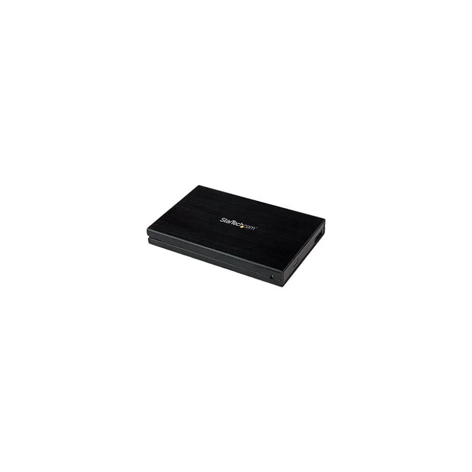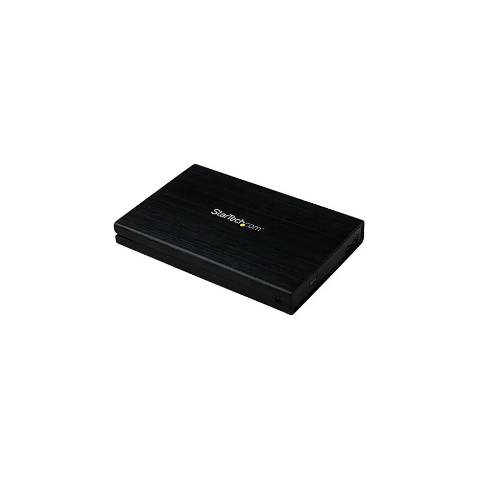 StarTech.comĀ® Drive enclosure with UASP helps to maximize storage and backup capabilities of your computer. You can connect a 2.5″ SATA III SSD or HDD via an available USB port. Works well with USB 2.0/1.1 host connections and delivers unmatched performance with USB 3.0 connectivity. Pair with UASP-enabled host controller and this enclosure will perform 70 percent faster. Compatible with any 2.5″ SATA hard drive and supports SATA I/II/III, large capacity drives. Use the full potential of your SATA III hard drives as the UASP minimizes latency, considerably increasing transfer speeds and reducing processor usage. Enclosure features aluminum construction for long lasting use and portability. Does not require external power adapter.