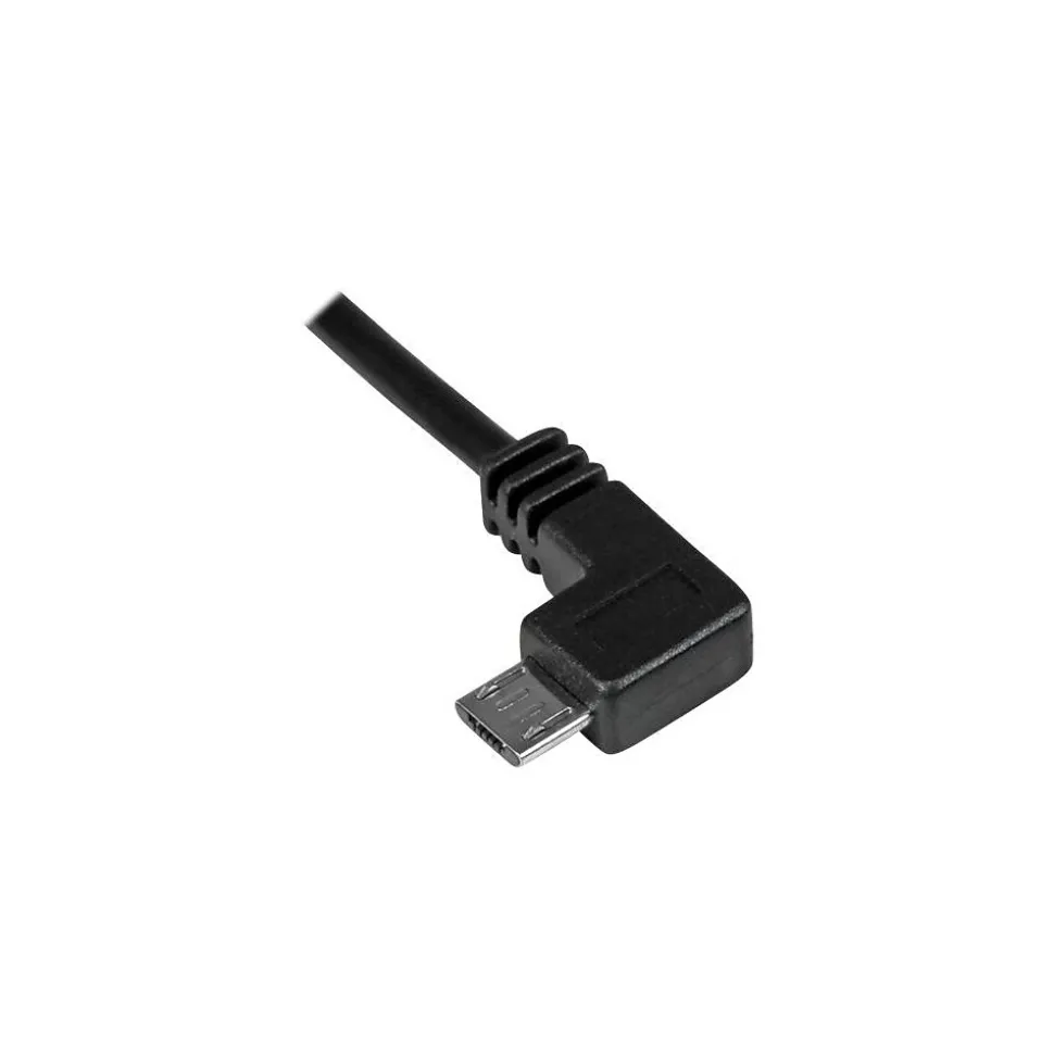 The StarTechmale/male charge and sync cable enables you to charge and sync micro-USB enabled mobile digital devices. This 6′ cable with polyvinyl chloride jacket, features a left-angled micro-USB connector that prevents unnecessary strain and damage to the connection port, making it perfect for charging car-mounted mobile devices.