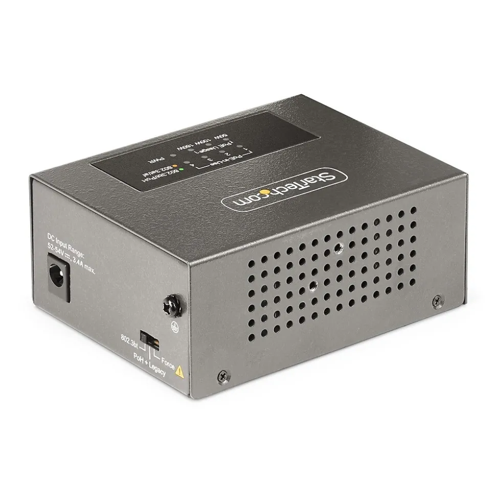 This 4-Port Multi-Gigabit PoE++ Injector Hub serves as Power Sourcing Equipment (PSE) and enables multigigabit speeds of 5Gbps, 2.5Gbps, 1Gbps, 100Mbps, and 10Mbps across four Ethernet ports. This mid/end-span injector is capable of transmitting network data and power up to 328ft (100m) for remote installations. The PoE, PoE+, PoE++ compatibility and selectable power output ensure seamless compatibility with Powered Devices (PD). The TAA-compliant injector includes a Universal Power Adapter for different regions. Multiport PoE Injector supports the IEEE 802.3af, 802.3at, and 802.3bt (Type 3 and Type 4) standards for Power Sourcing Equipment (PSE), delivering up to 52V DC and 95Watts. This flexibility eliminates the need for a separate power source for remote networked devices such as IP cameras, access control devices, remote kiosks (POSs), wireless access points, PoE lighting, and digital signage.
