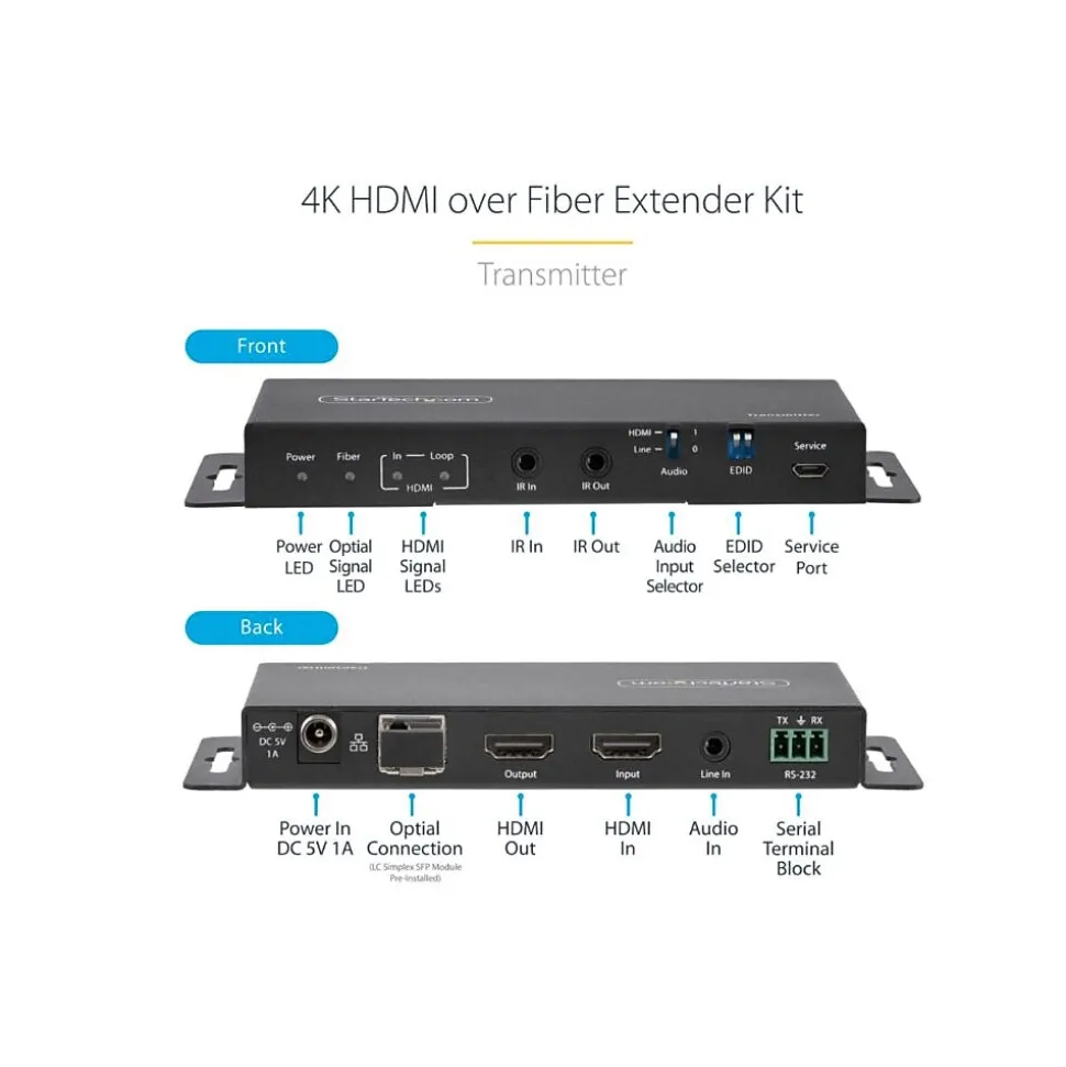 - Point-to-Point connection with optical fiber between transmitter and receiver means no IP configuration, drivers, or network equipment required; Durable metal housing with built-in mounting brackets for a tidy installation