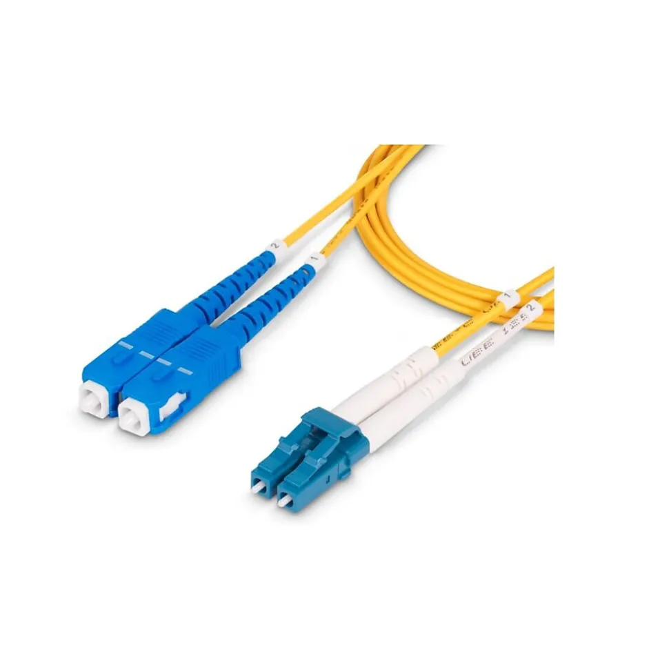 - OS2 LC to SC Single Mode Duplex Fiber Optic Patch cable for use in 100 Gigabit Ethernet and fiber-channel applications
