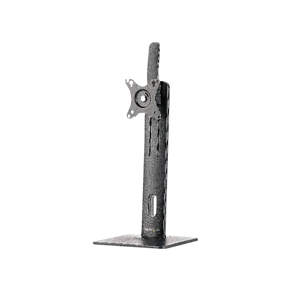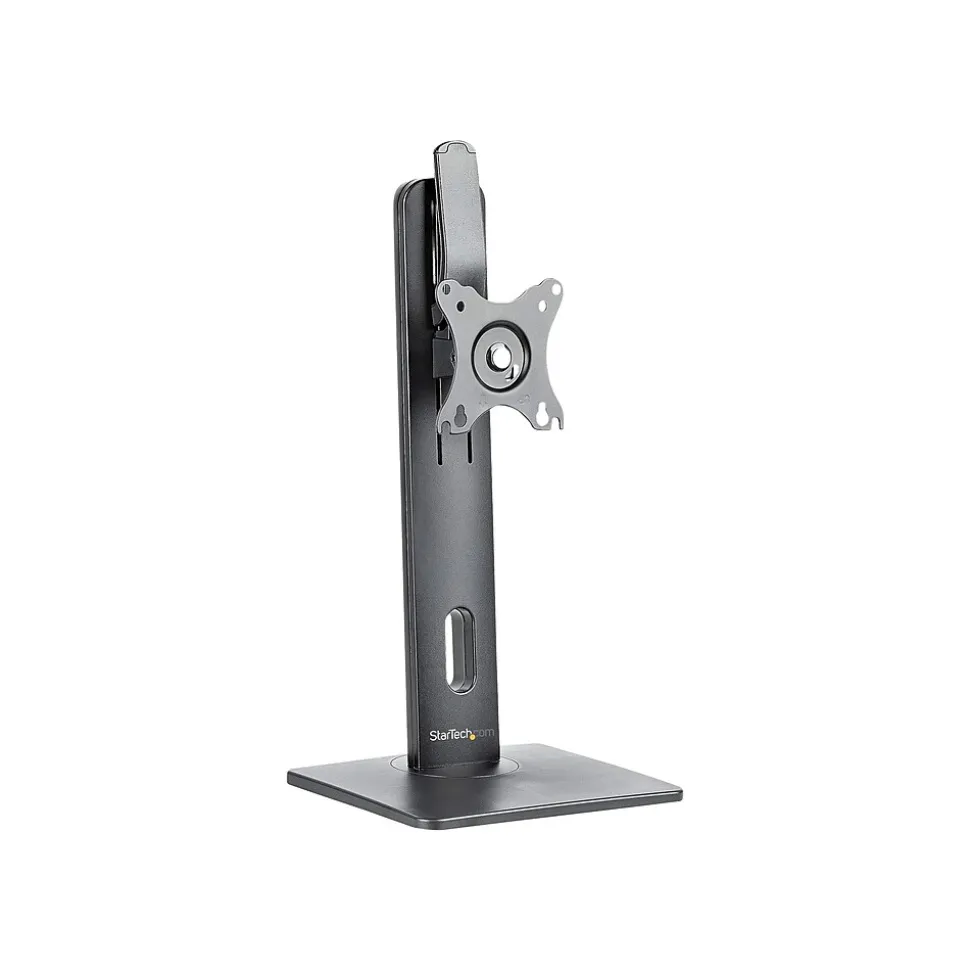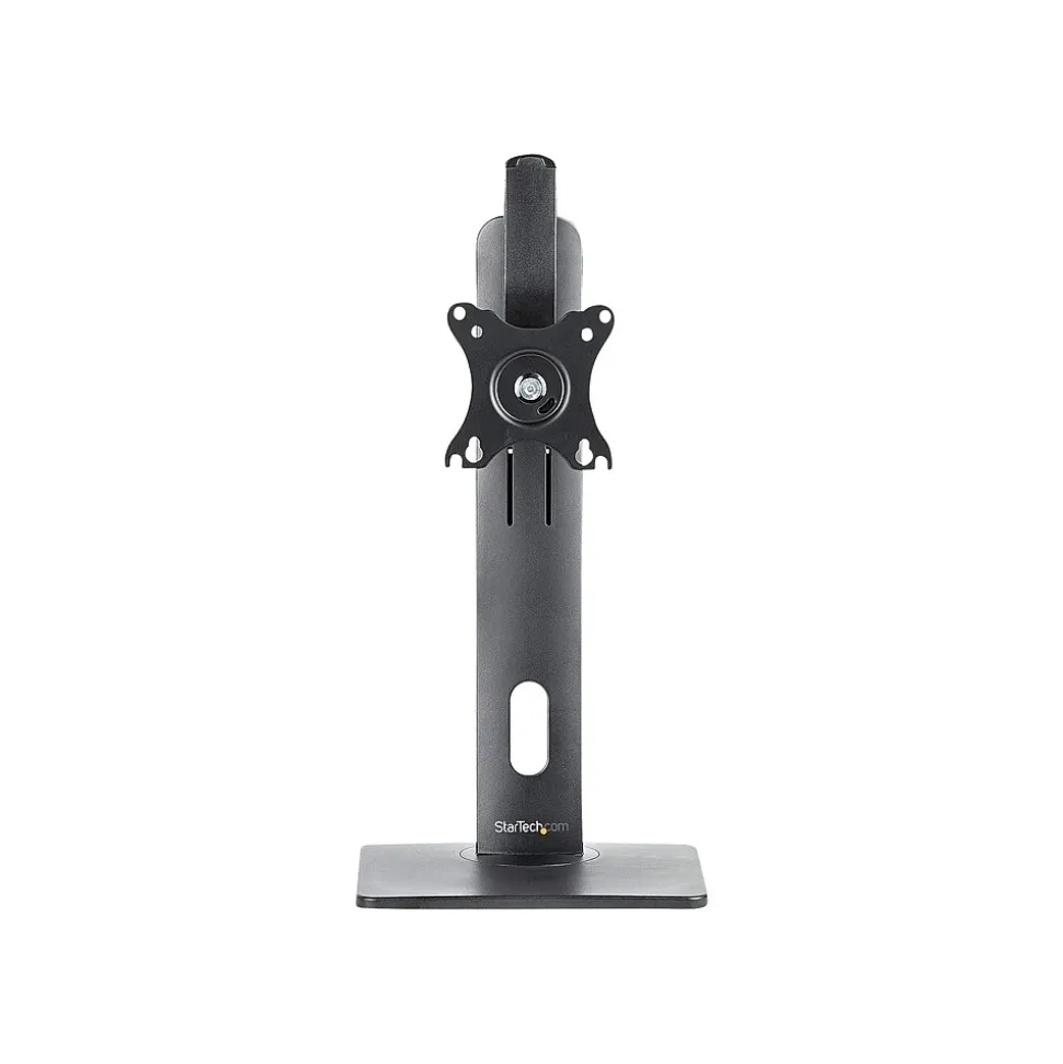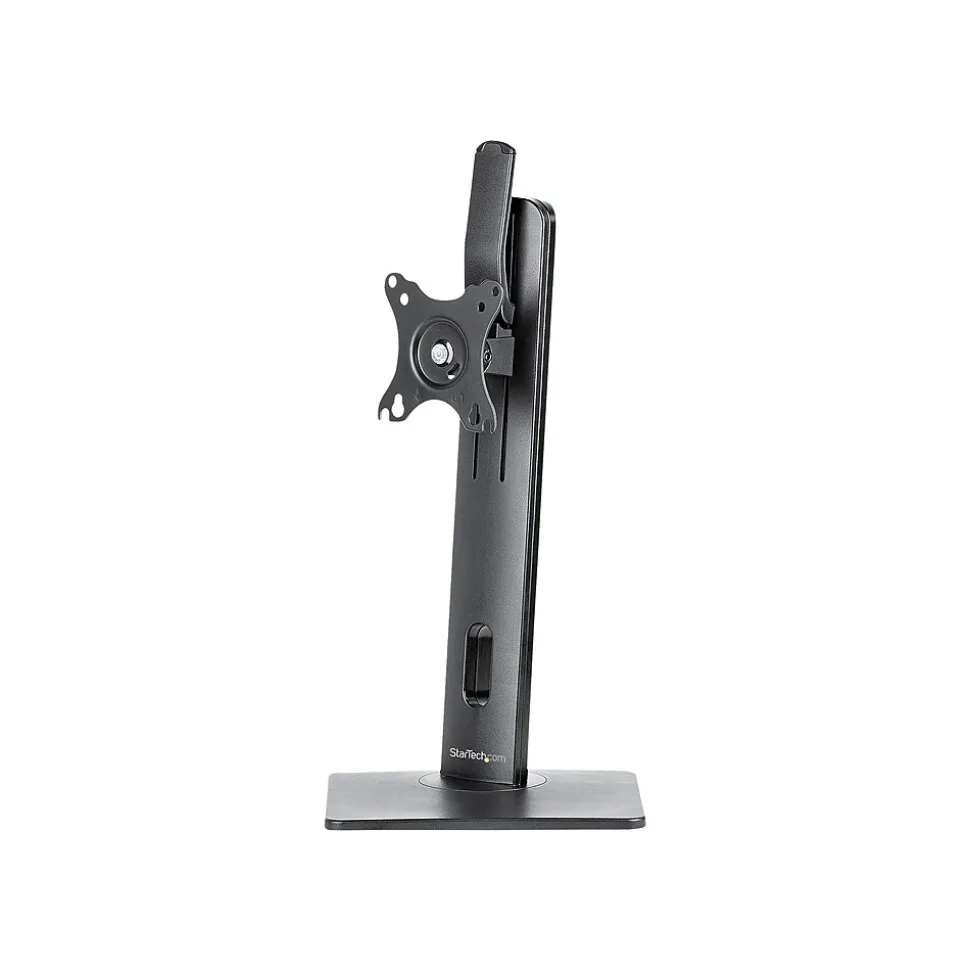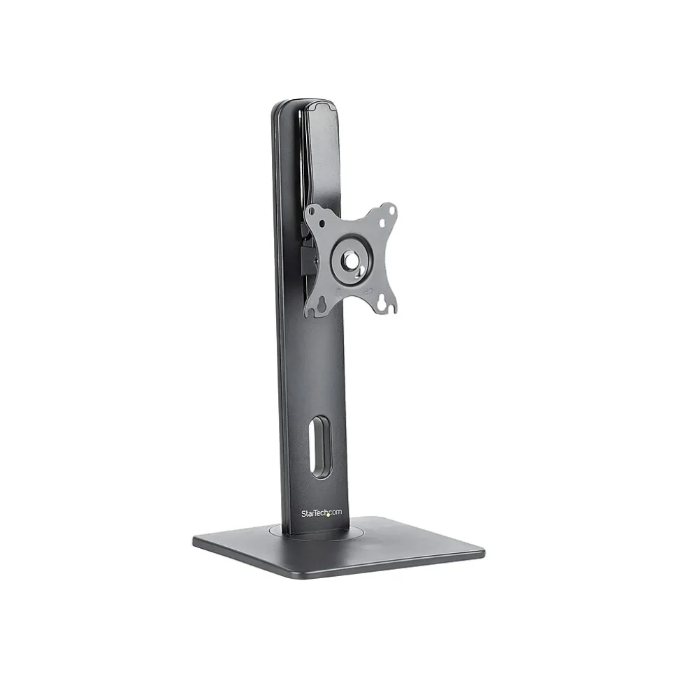 Free-standing Monitor Stand with Rotating Base – Full Motion Articulation – Spring-assisted One-touch Height Adjustments This single monitor stand enables you to raise your monitor off your desk or table to save space while increasing your productivity. With its durable aluminum construction and a sturdy base (7.8″x9.4″ / 200mm x 240mm), it can support VESA compatible displays up to 32″ and up to 15.4lb / 7kg in weight. The power coated black semi-gloss finish on the support column provides a professional and modern look that will match your monitor and workstation. Please refer to our technical specifications section for more information on the different aspect ratios supported. Adjust your monitor to the ideal position The free-standing monitor stand features a wide range of motion so you can position your monitor to the ideal viewing angle, allowing you to work more comfortably and reduce eye and neck strain. You can easily tilt +/-15°; swivel +/-180°; and make height adjustments to fully adjust your monitor so it can meet your ergonomic needs. With a rotating base, this monitor stand lets you swivel your display a total range of +/- 40°. Easy one-touch height adjustments The spring-assisted monitor stand offers a total adjustment range of 10.4″ to 16.3″ (265mm to 415mm) from the surface or your desk. Height adjustments are easy to make with the built-in easy-access lever at the top of the stand. Keep a tidy setup and protect your desk This monitor stand lets you keep an organized desk/workstation with the built-in cable management slot at the lower portion of the column. It is equipped with rubber anti-slip pads that will keep your desk or table surface protected from scratches or scuffs. FPPNEUSTND is backed by a StarTech.com 5-year warranty and free lifetime technical support.