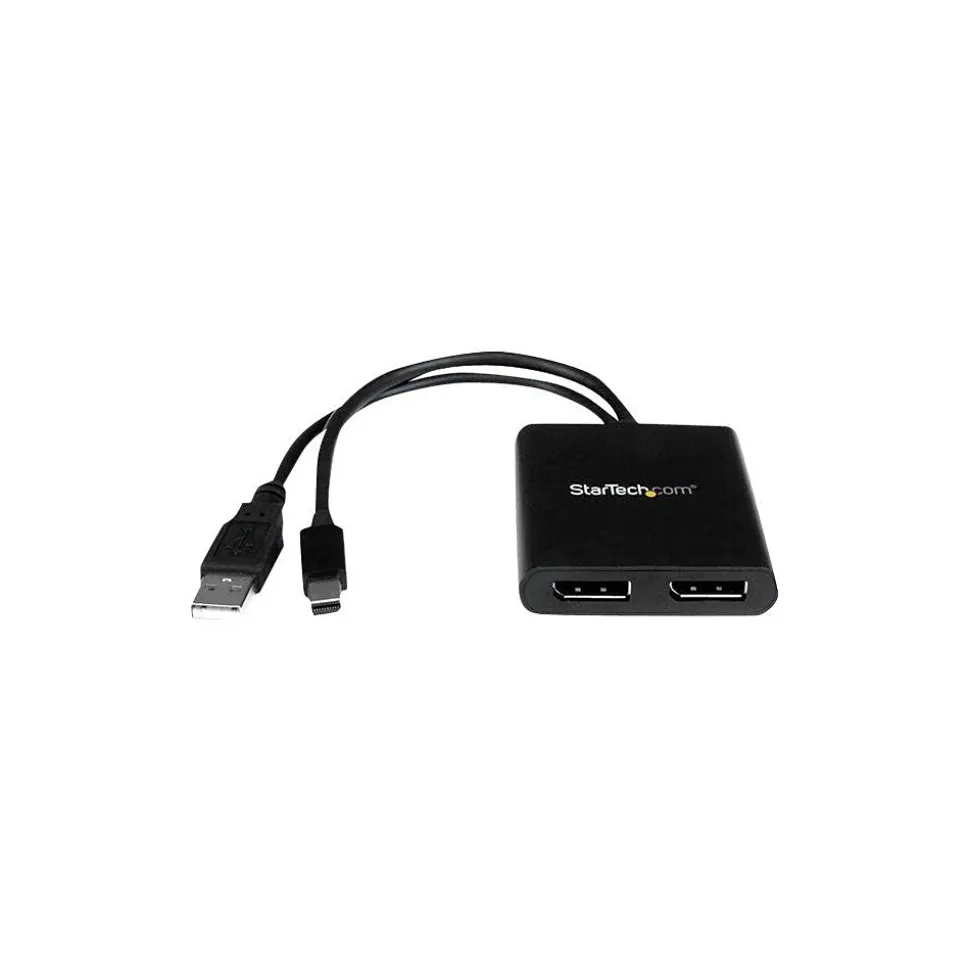 Configure your displays for any environment by using this StarTech Mini DisplayPort to 2x DisplayPort MST hub. It features a newly engineered chipset that provides increased compatibility. By connecting two additional displays to your computer, this Hub makes multitasking much easier. This multi-stream transport hub technology uses your existing video card to minimize the use of system resources while providing Ultra HD 4K resolutions. It supports plug-and-play installation for a hassle-free setup. The MST hub is perfect to create a panoramic video wall for Mini DisplayPort digital signage applications.