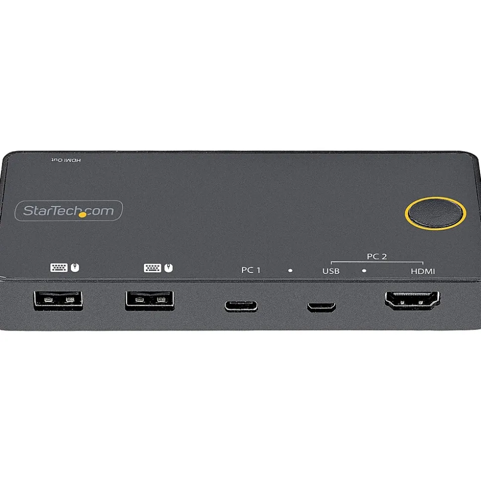 Utilizing USB-C with DP alt-mode and USB-A and HDMI this StarTech compact KVM switch only requires three host cable connections, ensuring a small footprint with limited cabling requirements. All required cables for connecting your computers are included, to ensure a hassle-free setup right out of the box.