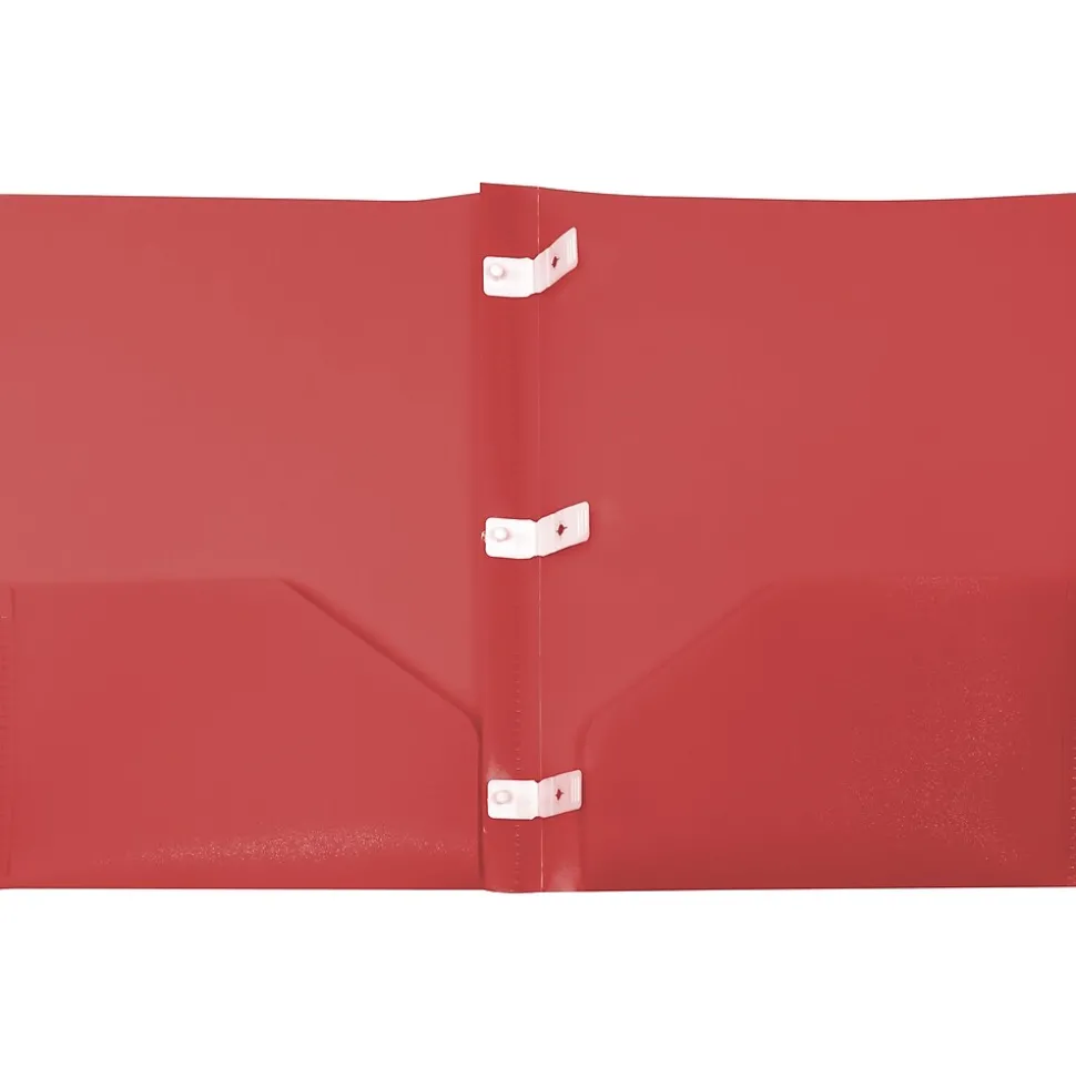 Storex folders and report covers are made from a thick poly material which will not tear or, crack, or fray. The covers feature plastic prongs which are safer to use than metal tangs.