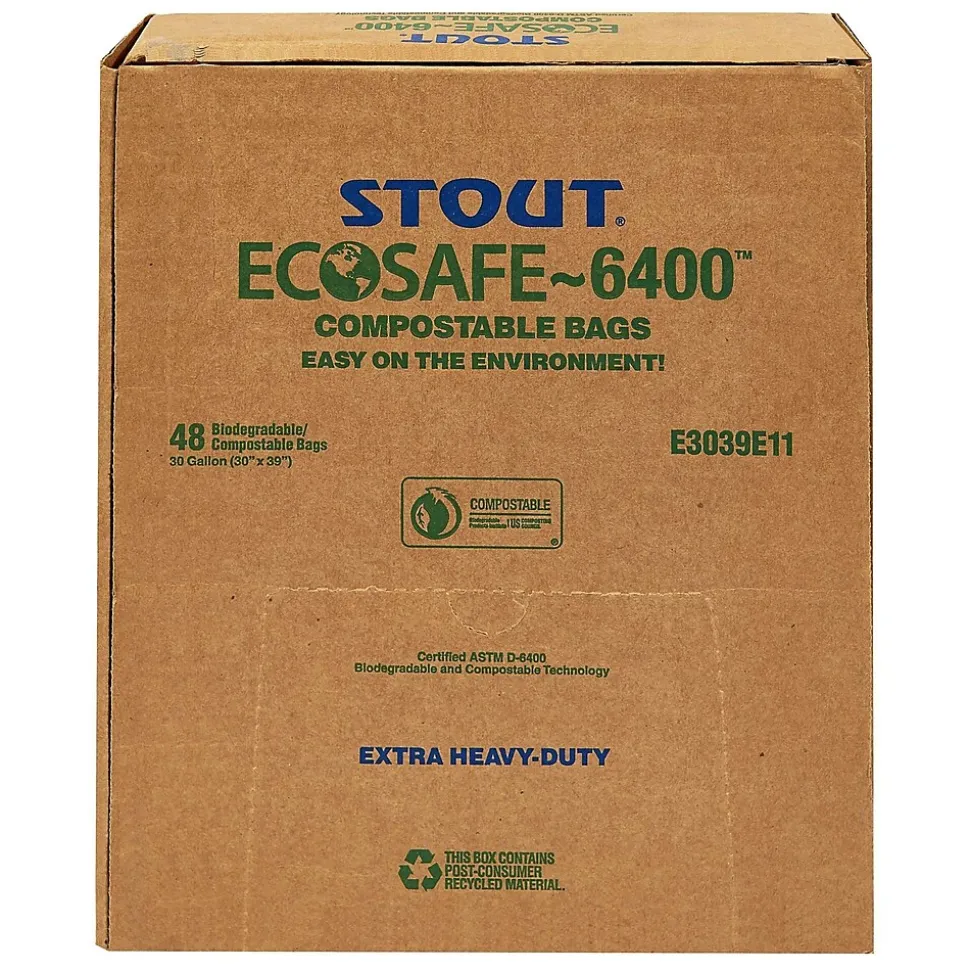 Stout EcoSafe-6400™ Bags, 48 Gallon,.85 Mil, Green, 42″ x 48″, 40/Bx