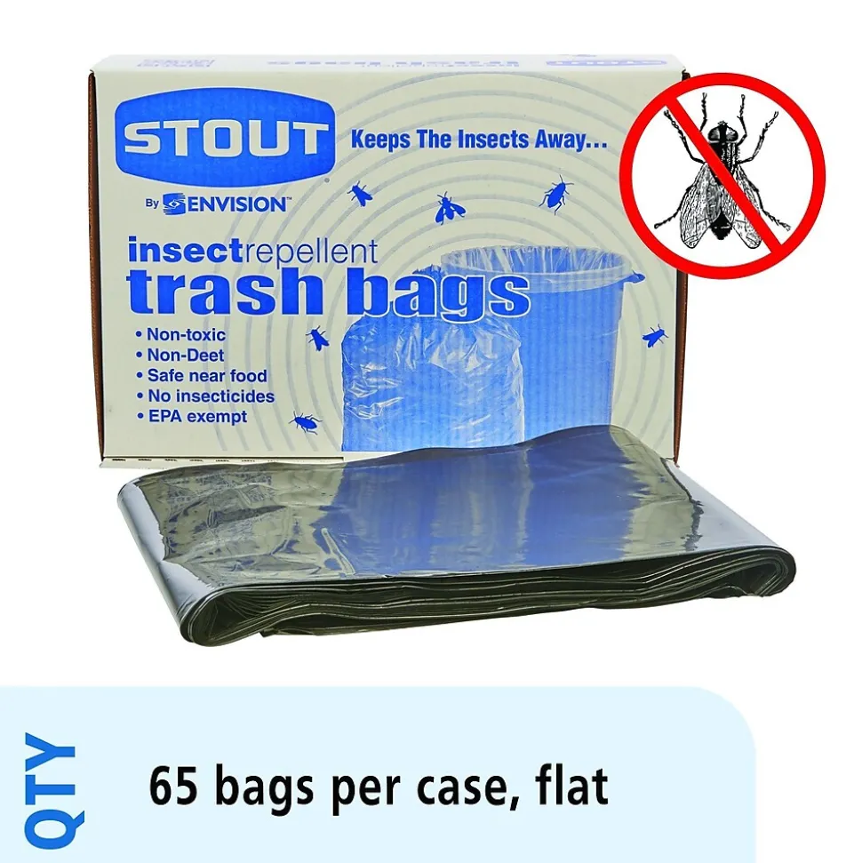 Stout® Insect Repellent Trash Bags, Black, 45 Gallon, 65 Bags/Box