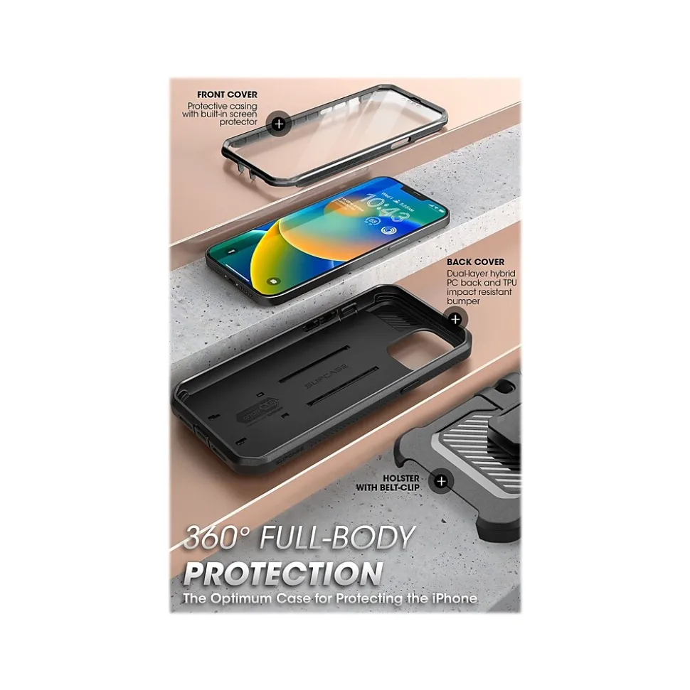 The SUPCASE Unicorn Beetle PRO rugged case ensures 360-degree full-body protection for your iPhone 13 (2021, 6.1″ screen) and iPhone 14 (2022, 6.1″ screen). Precise cutouts allow seamless access to all ports and features. Exceeds military drop standards: drop-tested at 48″ height, 26 times.