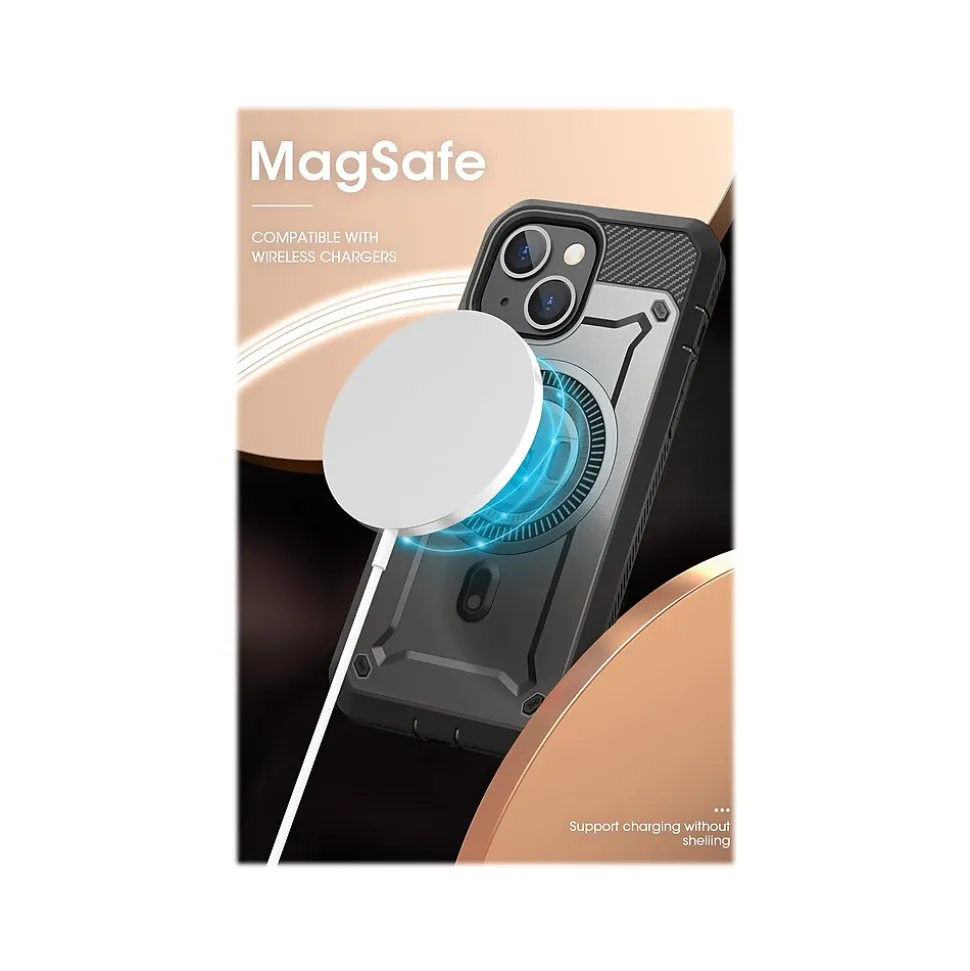 The SUPCASE Unicorn Beetle PRO MAG rugged case ensures protection for your iPhone 14 Plus (2022, 6.7″ screen). Raised bezels keep the screen and lens off damaging surfaces. Precise cutouts allow seamless access to all ports and features.