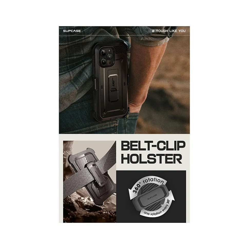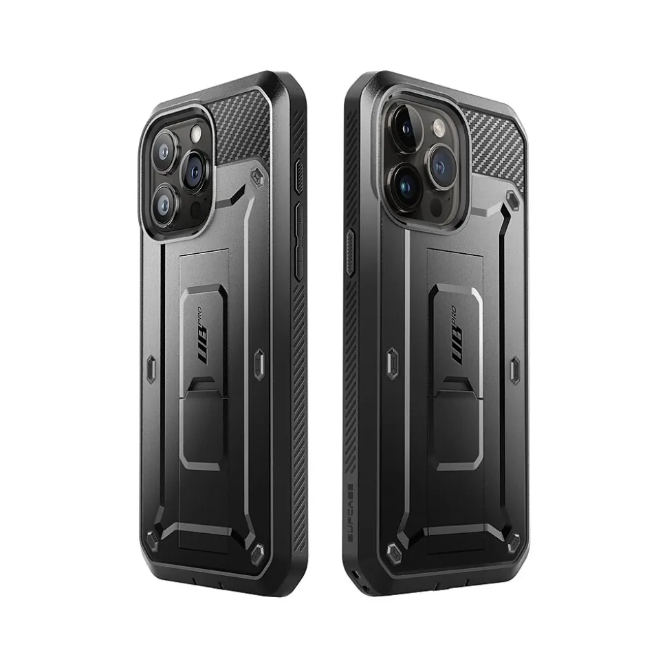 The SUPCASE Unicorn Beetle PRO rugged case ensures full-body protection for your iPhone 15 Pro Max (6.7″ screen). Features a dual-layer unbending polycarbonate back and impact-resistant TPU bumper. Port plugs keep out dust and debris.