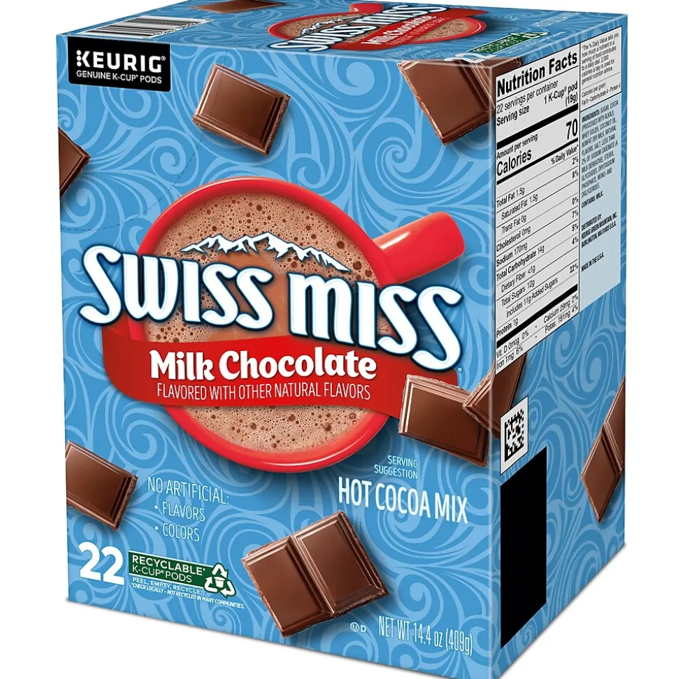 Provide drinks at sledding parties, special family nights and other events by using this 22-pack of hot cocoa pods. Made with imported premium cocoa, these pods produce creamy and delicious drinks. These Keurig Swiss Miss regular hot cocoa pods offer rich milk chocolate flavor, making them a perfect solution for satisfying your sweet tooth on a cold day.