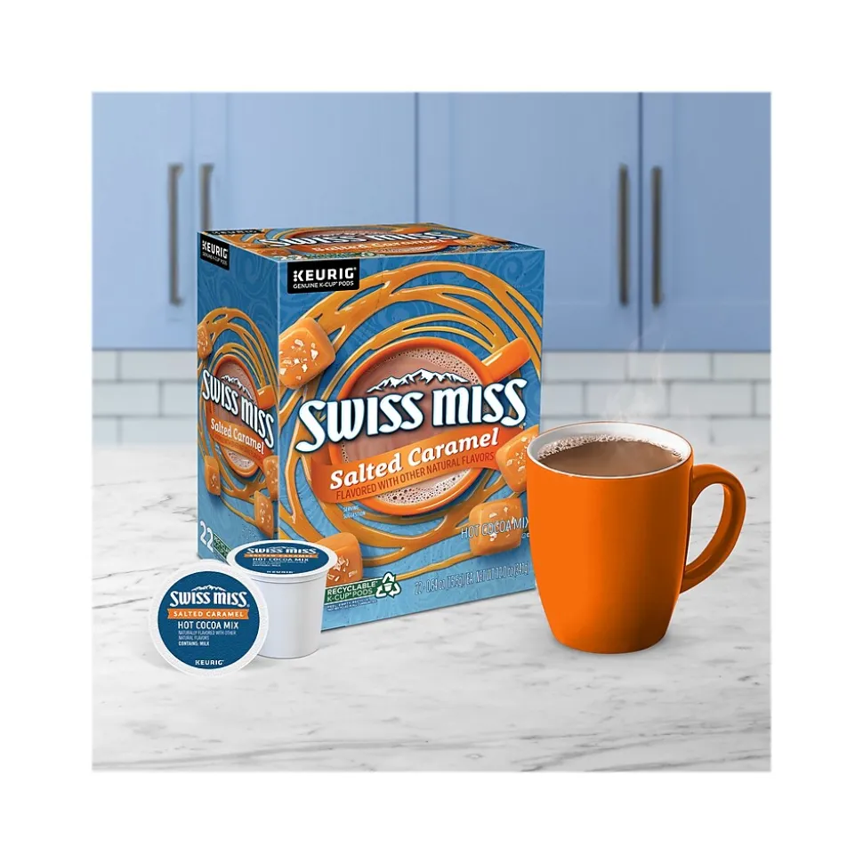 Nothing beats a cup of the delicious tasting Swiss Miss Salted Caramel warm hot cocoa on a cold winter night. Now you can enjoy the sweet taste of chocolaty cocoa and smooth caramel flavor whenever you’re in the mood for a simple yet delicious treat that adds warmth to any moment. Create a cozy new family tradition, or simply enjoy a quiet moment alone when you wrap your hands around a warm mug of the Swiss Miss Salted Caramel hot cocoa. Swiss Miss has been creating the signature taste of hot chocolate since 1961 in a real dairy in Menomonie, Wisconsin. Made with dried milk and premium imported cocoa, each K-Cup pod holds the perfect amount of Swiss Miss Salted Caramel hot cocoa, creating a rich, indulgent taste to sip and savor any time of day. Compatible with all Keurig single-serve K-Cup pod coffee makers, the Swiss Miss Salted Caramel hot cocoa is now easier to enjoy than ever before.