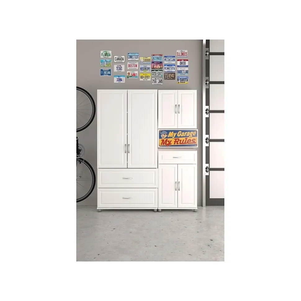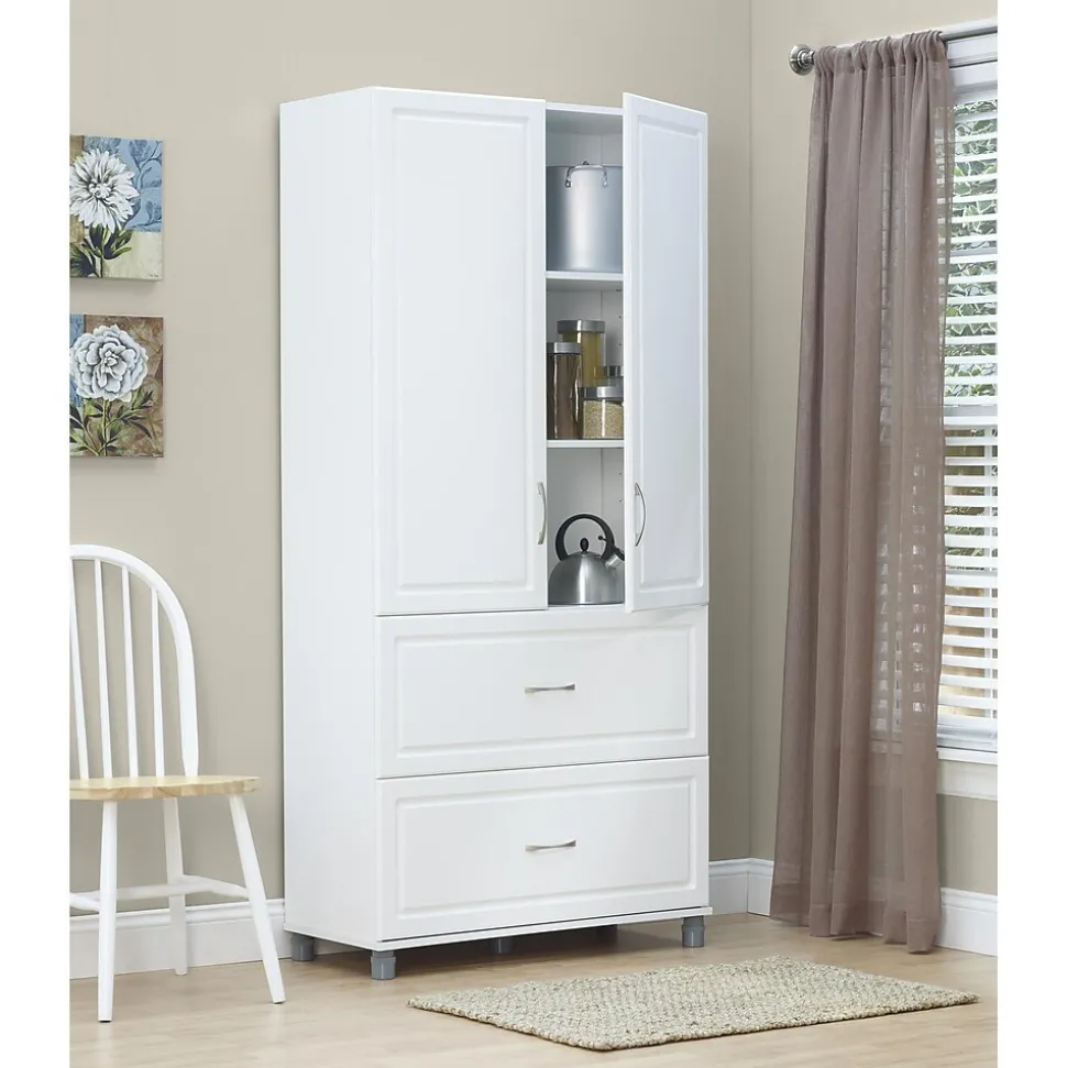 Satisfy all your storage needs with the SystemBuild Kendall 36” 2 Drawer/2 Door Storage Cabinet. Whether you need a place to store kitchen bowls and appliance or somewhere to place extra towels and bed sheets, this Cabinet is the perfect choice. Behind the doors, 3 shelves offer plenty of room for items that need a home. Two of the shelves are adjustable to meet your specific storage needs. The 2 roomy drawers provide additional easy-access storage space. The 36” 2 Drawer/2 Door Storage Cabinet features a crisp white finish that creates a refined, clean look in your home. Use this piece as a stand-alone item, or combine it with additional SystemBuild Kendall storage items to create the perfect storage solution for your home. SystemBuild 36” 2 Drawer/2 Door Storage Cabinet requires assembly upon delivery.