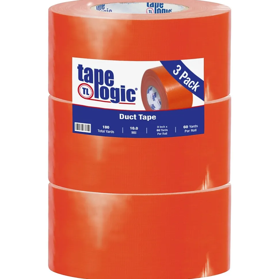 Tape Logic™ Orange duct tape measuring 3″ x 60 yds is ideal for bundling, sealing and light repair applications. Tear-resistant tape having a thickness of 10 mil adheres well to a wide range of surfaces, sold as 3 per pack.