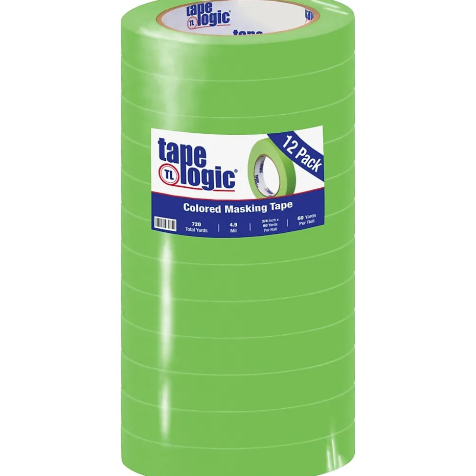 Tape Logic™ Masking tape in light green color measures 3/4″ x 60 yds and is used to color-code shipments or for inventory identification. Tape offers good initial adhesion and is ideal for indoor and room temperature applications.