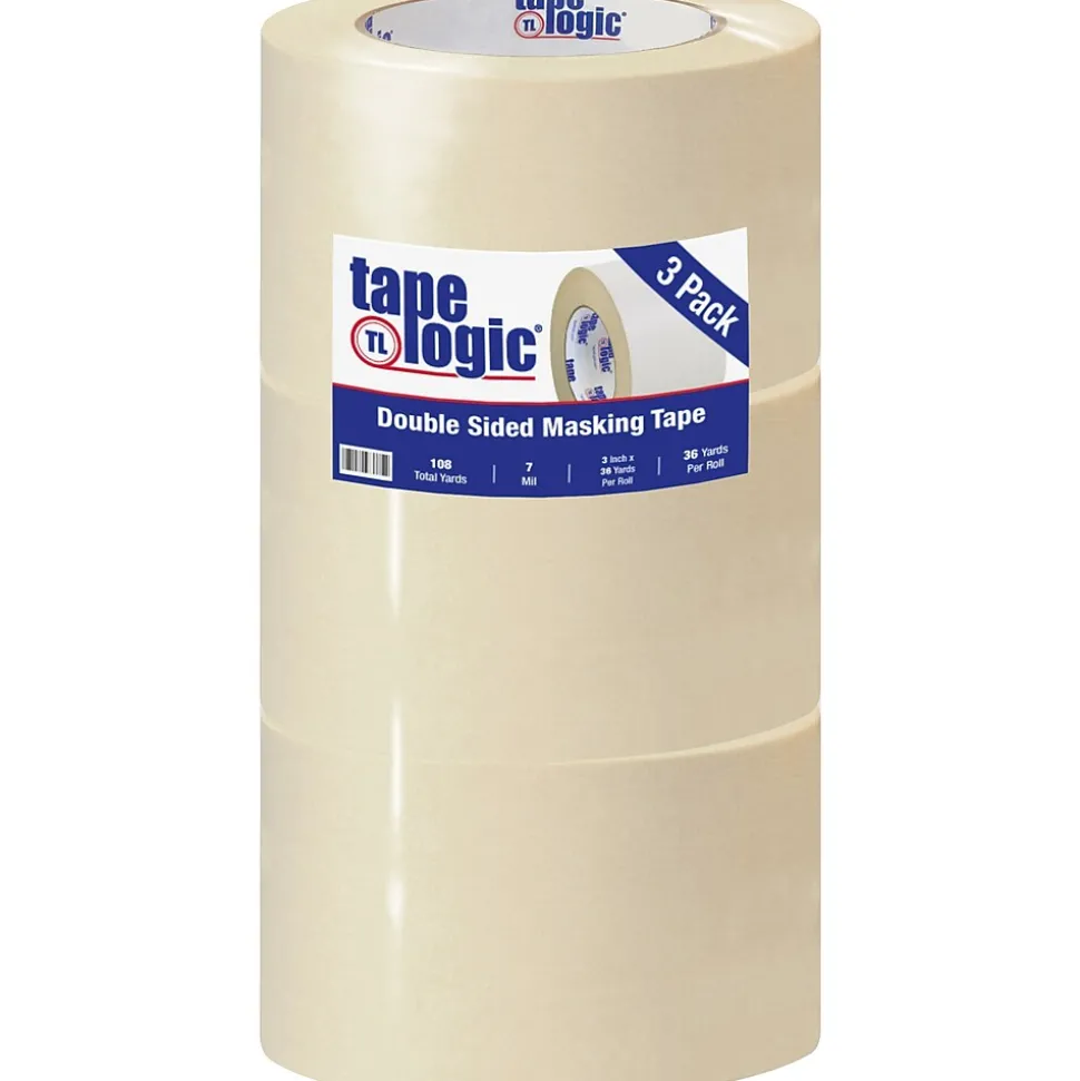 3″ x 36 yds. (3 Pack) Tape Logic® Double Sided Masking Tape. Great for golf club grips and splicing paper, foil, film and fabric. Crepe paper tape with a double coated, rubber, pressure sensitive adhesive. Durable and hand-tearable. Service Temperature 50 – 225 degrees F. Apply with a Double-Sided Desk Top Dispenser stock number TDDC926.