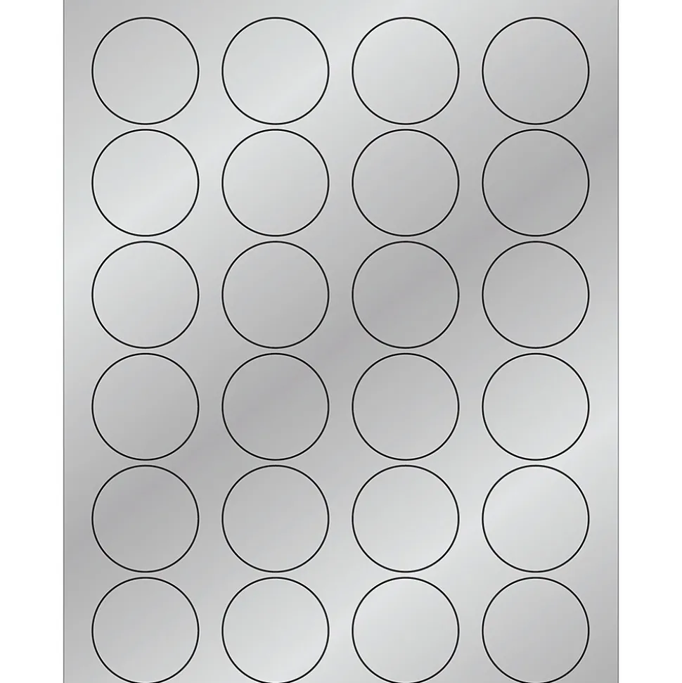 1 5/8″ Silver Foil Circle Laser Labels. Gold and Silver Labels add a touch of elegance to your products or mailings. Heat resistant adhesive resists jamming. Print labels on a Laser printer.