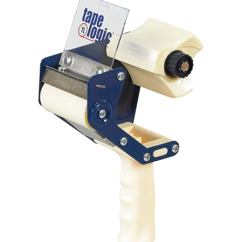 Heavy-duty carton sealing tape dispenser has high impact plastic and durable steel construction. 3″ Dispenser features heat-treated cutting blades and adjustable tension control.
