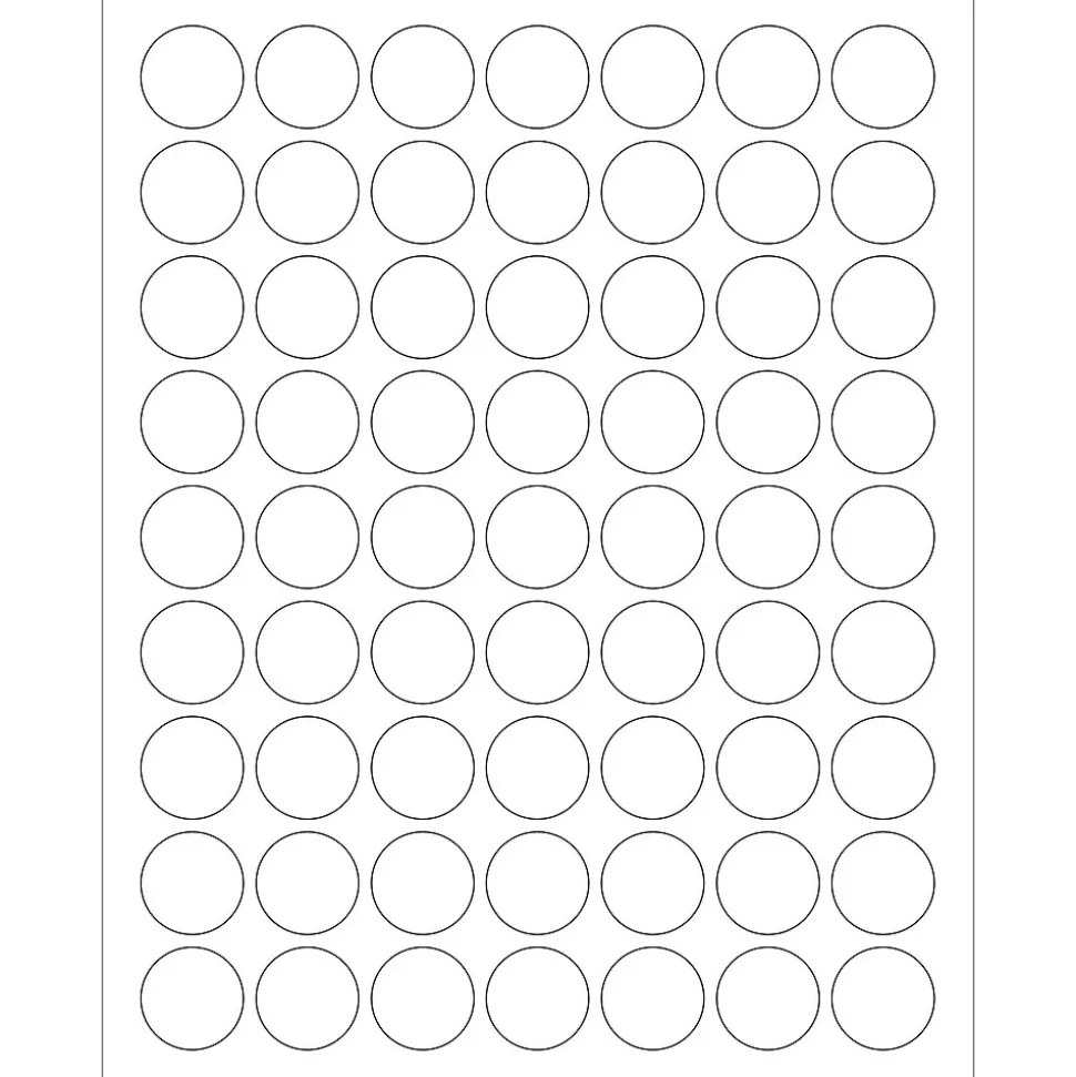 1″ White Removable Circle Laser Labels. Creates temporary labels for your projects. Labels lift cleanly. Will not leave a residue when removed. Use with Laser or ink jet printers.