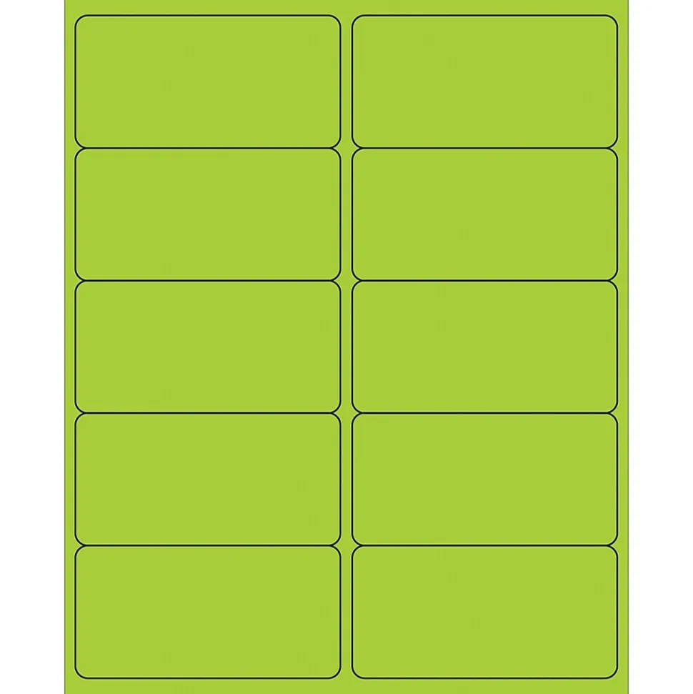 4 x 2″ Fluorescent Green Removable Rectangle Laser Labels. Creates temporary labels for your projects. Labels lift cleanly. Will not leave a residue when removed. Use with laser or ink jet printers.