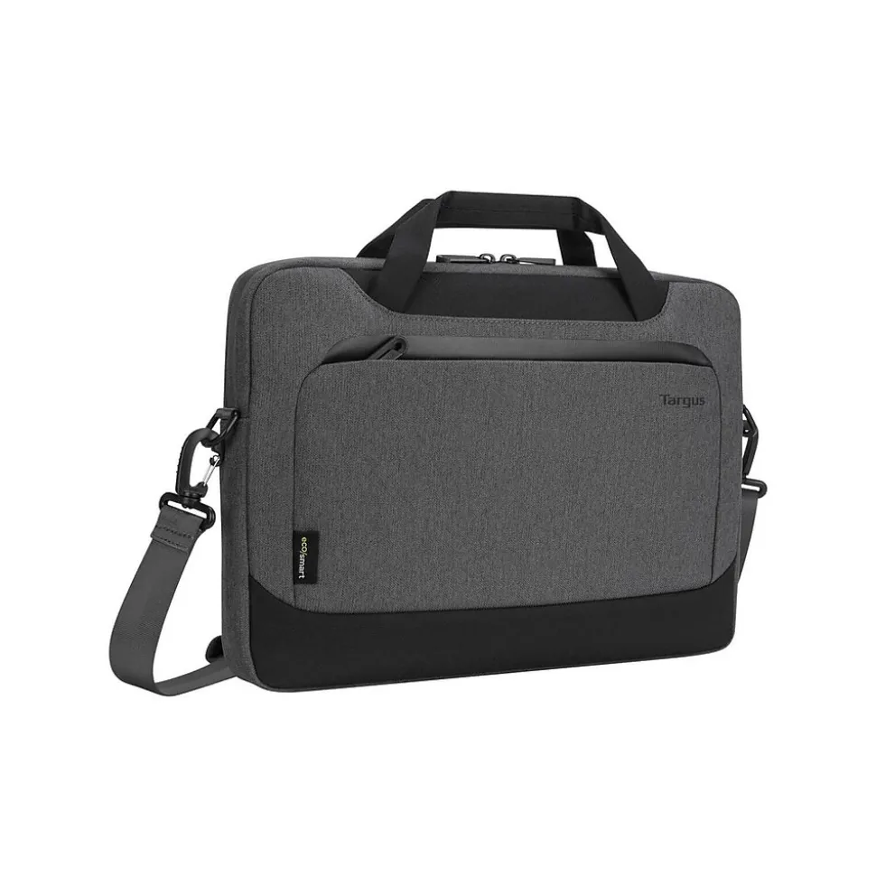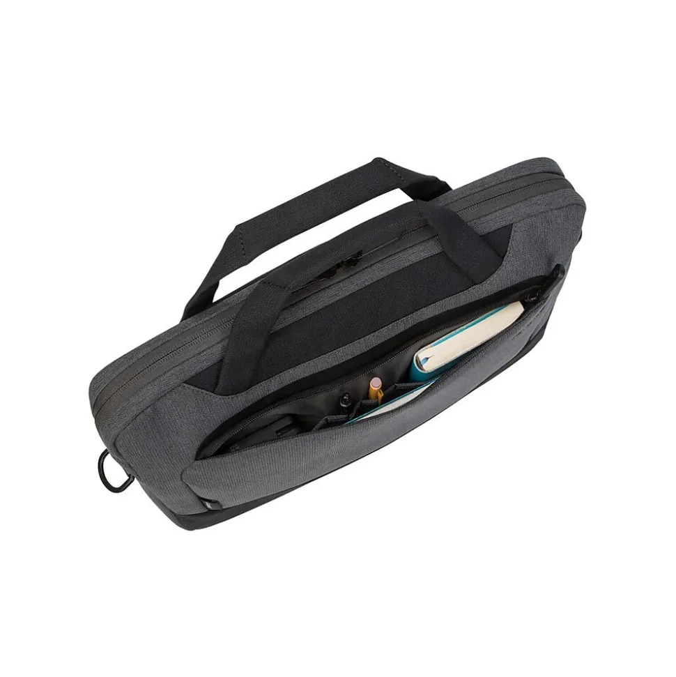 Made of recyclable materials on the inside and out. Using fabric woven from 12 recycled water bottles, the 14″ Targus Cypress slim case with EcoSmart is thoughtfully designed to protect your work essentials while also protecting the environment. Featuring a single main compartment and a convenient quick-stash pocket, it’s easy to safeguard your laptop and transport your essentials in this slim, lightweight case. Plus, with three modes of transport, you can grab and go with carry handles, go hands-free with the shoulder strap, or use the trolley strap to secure on your rolling luggage.