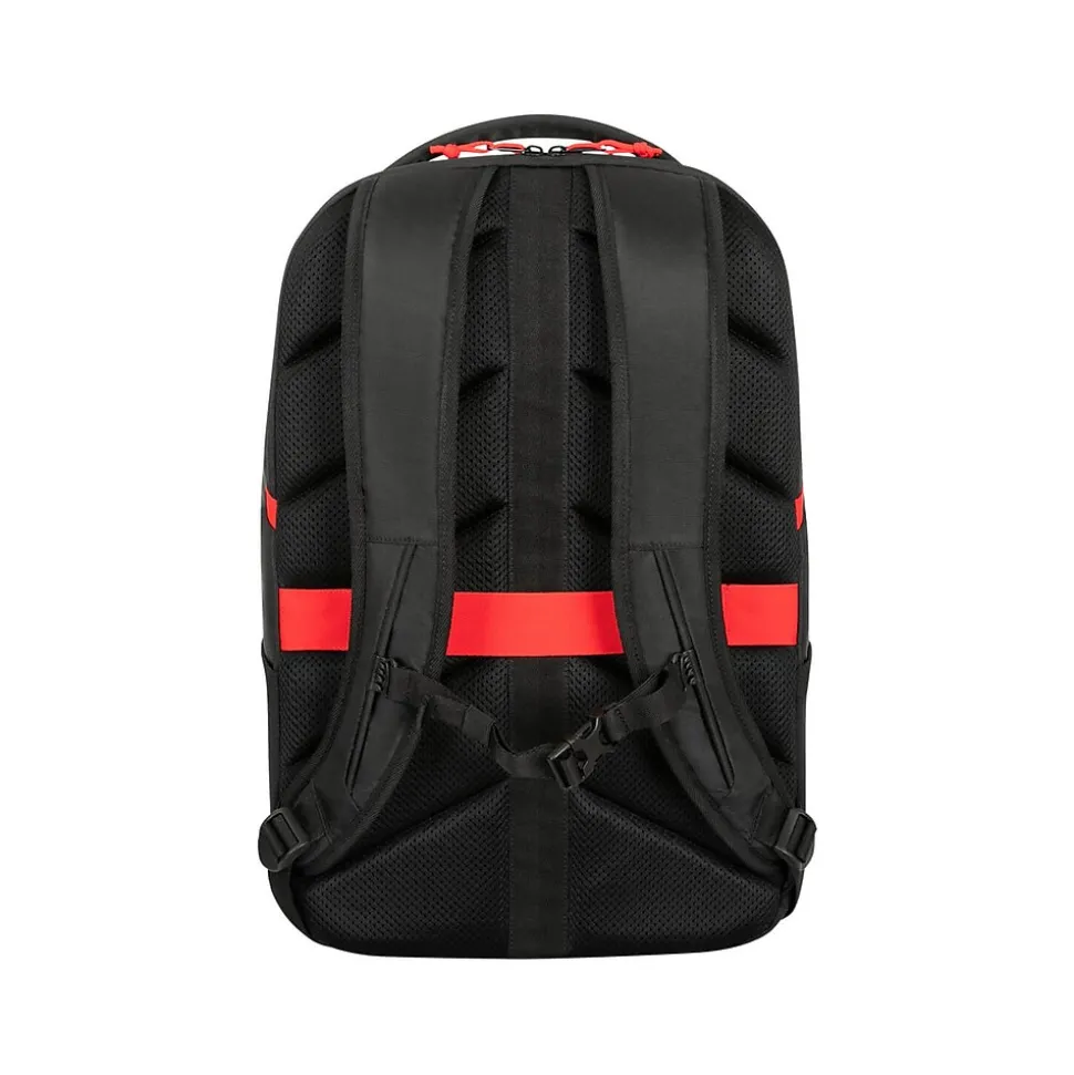 - Comes in a large size and offers a 17.3″ padded laptop compartment, an oversize internal compartment for gaming accessories with headset loop, two front stash pockets, and two water bottle pockets