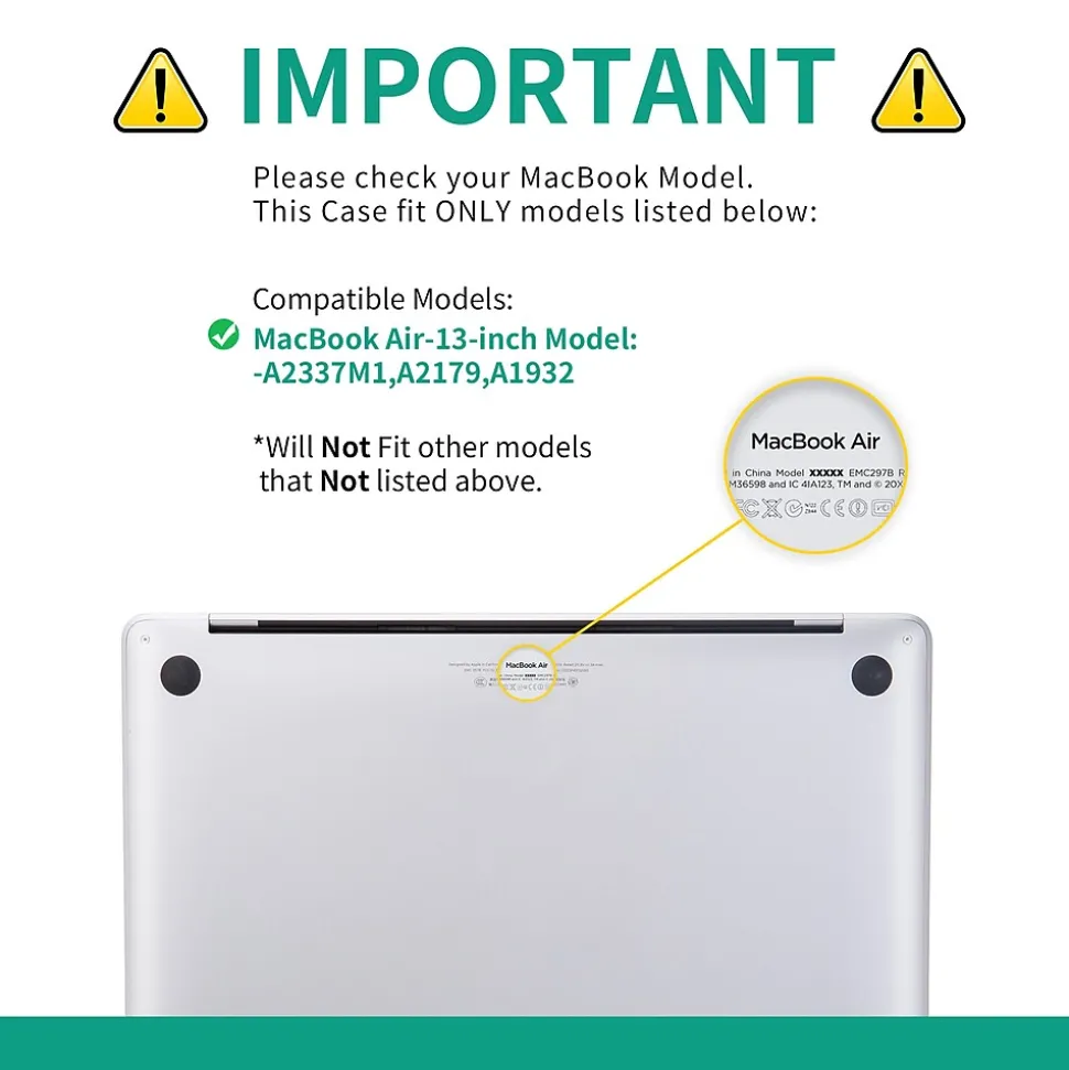 - Apple MacBook Air 2020. 2019, 2018- models M1 A2337 A2179 A1932