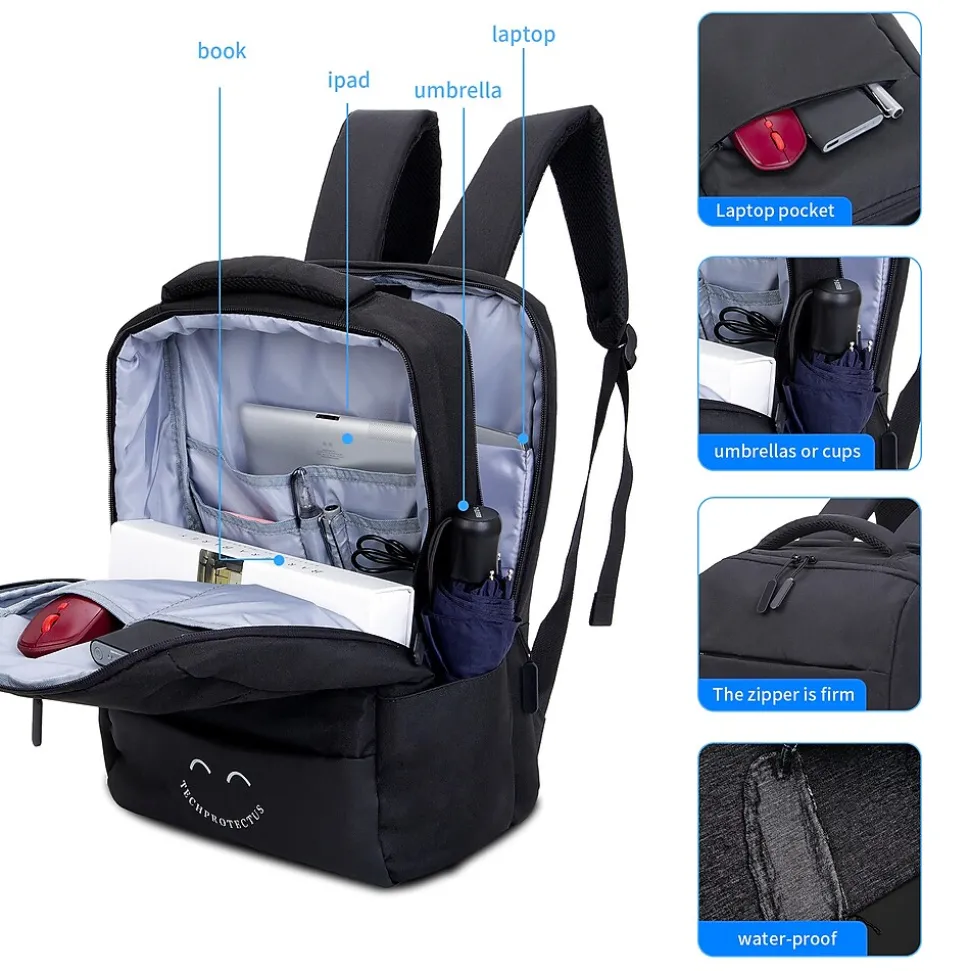 Techprotectus 15.6″ laptop Backpack with USB charging port.