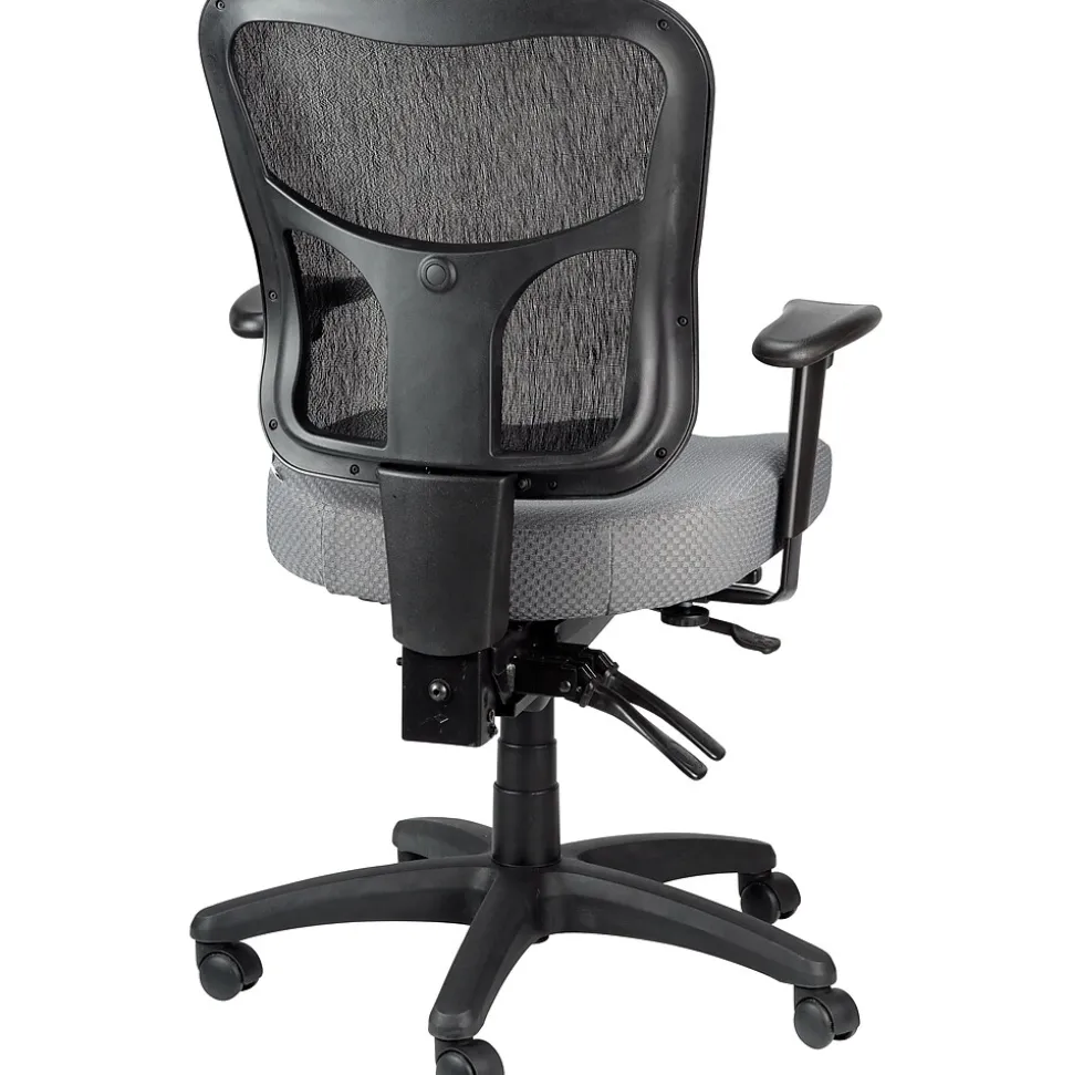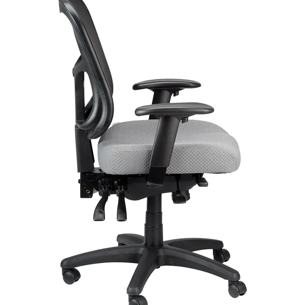 - Polyester fabric upholstery with mesh back for durability and extended comfort