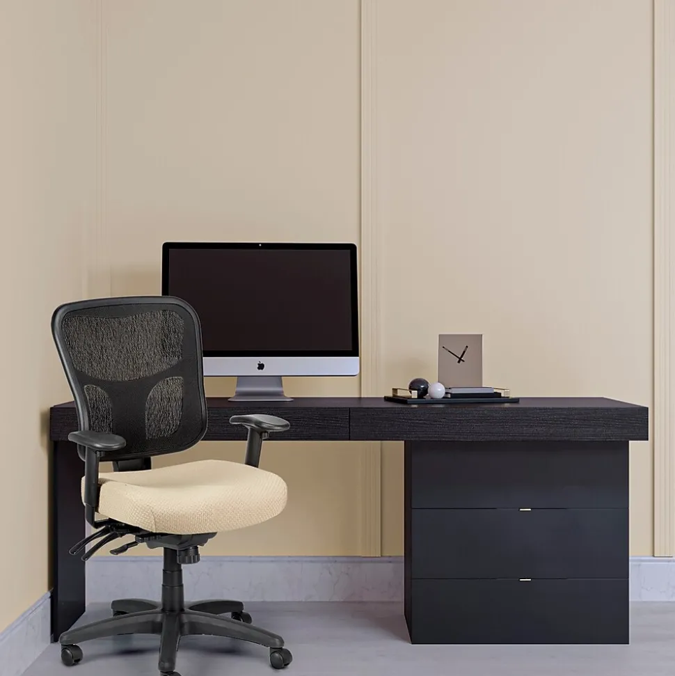 This Tempur-Pedic task chair offers comfortable support throughout long workdays. Its seat is upholstered with TEMPUR memory foam, which supports the body’s weight and absorbs energy while conforming comfortably to the user’s shape. The Tempur-Pedic beige mid-back task chair has adjustable arm width and height, seat back and height position and tilt tension, letting the user select an optimal sitting position. The seat’s mesh back offers lumbar support, which improves posture over the course of the day.
