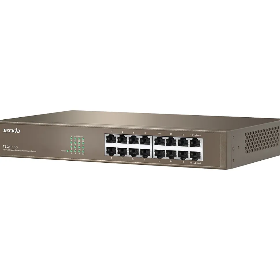 - Switch has 16 10/100/1000Mbps Base-T Ethernet ports (Auto MDI/MDIX)
