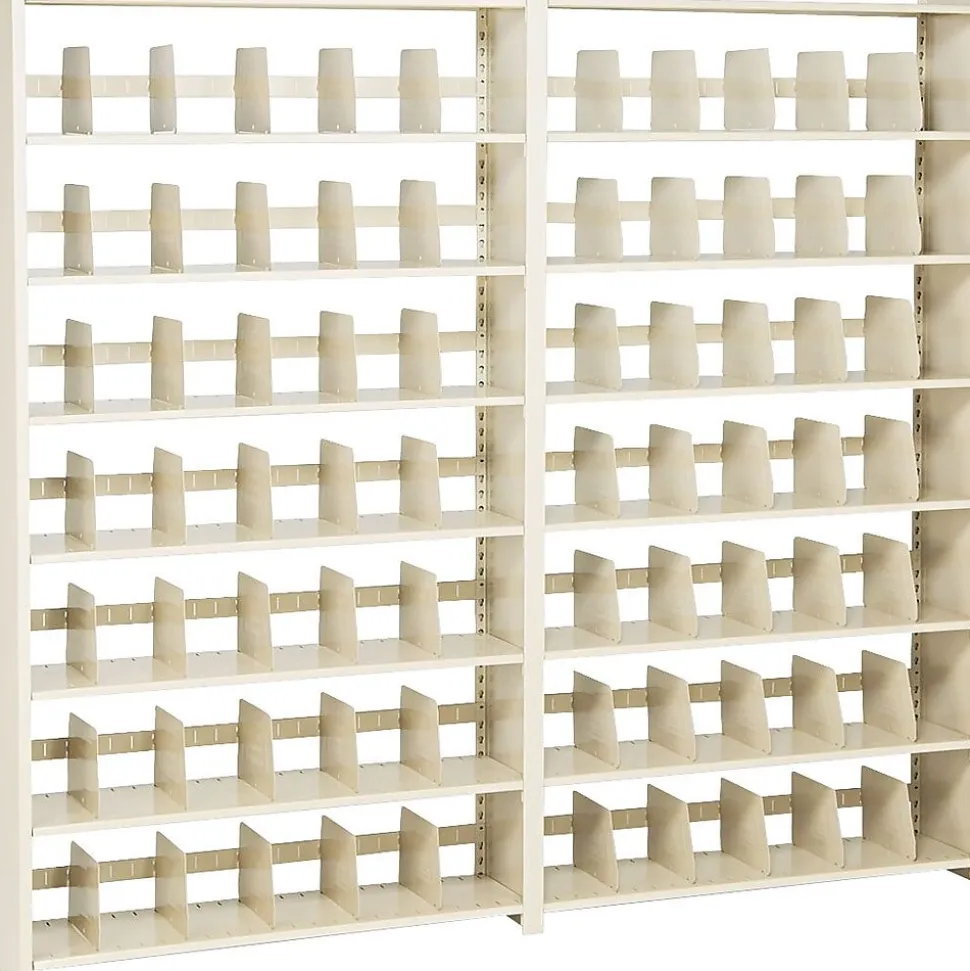 - Includes adjustable 12″ deep shelves, shelf supports and five file dividers per shelf