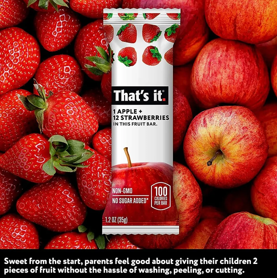 - We make it convenient and fun to get your two whole servings of fruit just from one That’s€™s It. Fruit Bar.