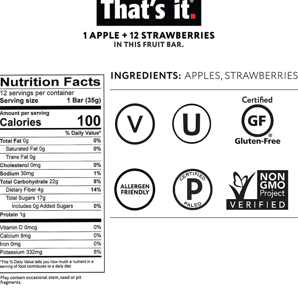 - Using only natural, non-GMO fruit and nothing else, ingredient lists have never been this simple and clean. Made in an allergen-free facility, That’s€™s It.